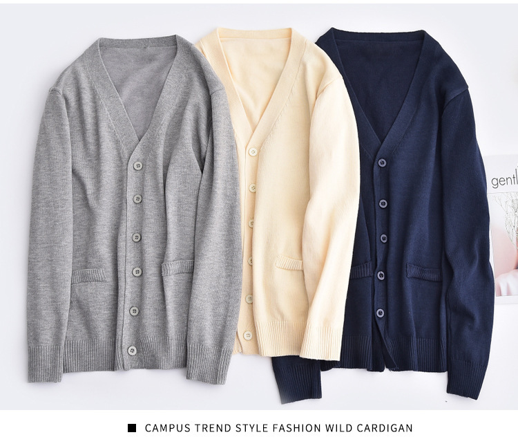 오리지널 JK 스웨터 카디건 코트 여성 봄과 가을 일본 대학 스타일 교복 학교 감각 다크 그레이 긴 소매 니트 탑
