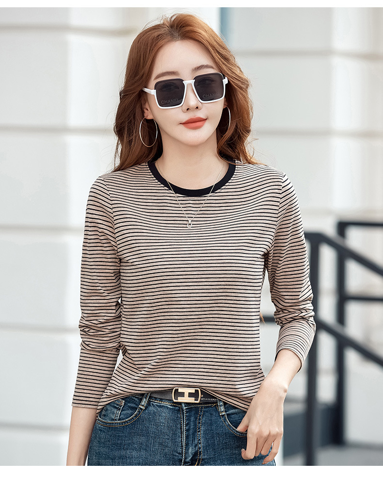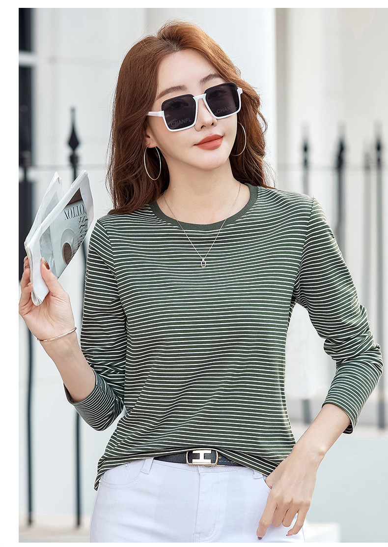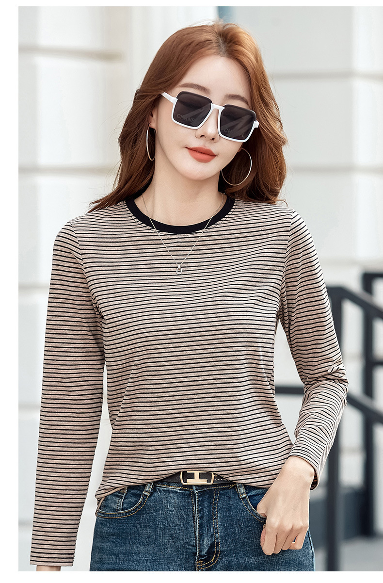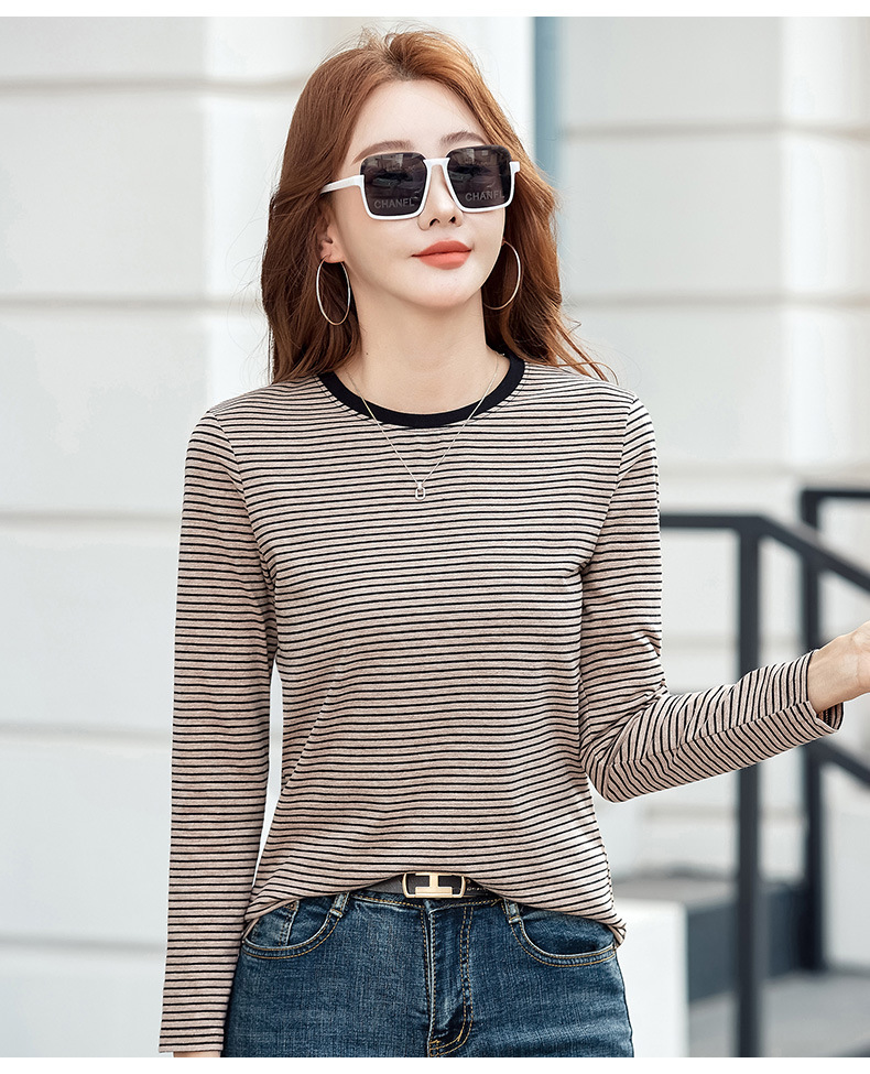 443 둥근 목 줄무늬 긴 소매 티셔츠 여성용 내부 바닥 셔츠 2024 봄 새로운 슈퍼 멋진 최고 기질 슬리밍