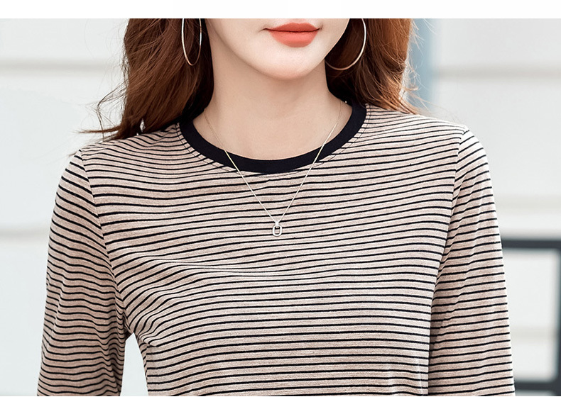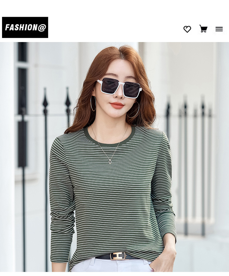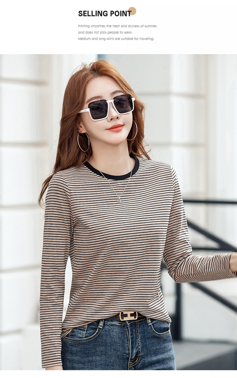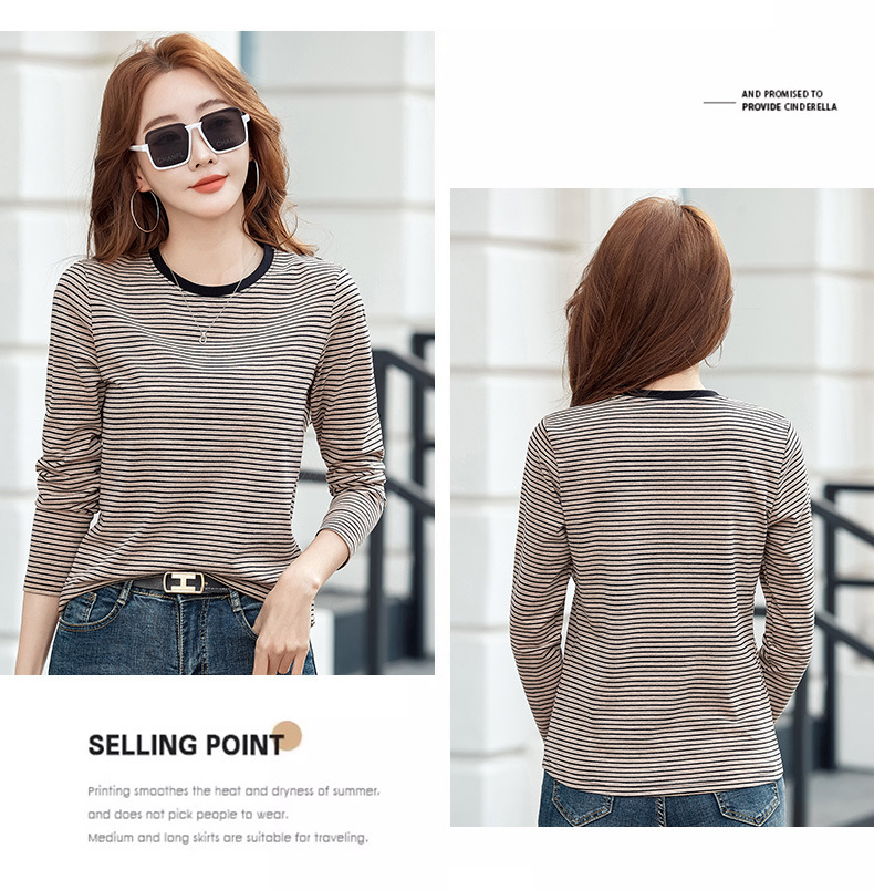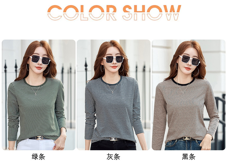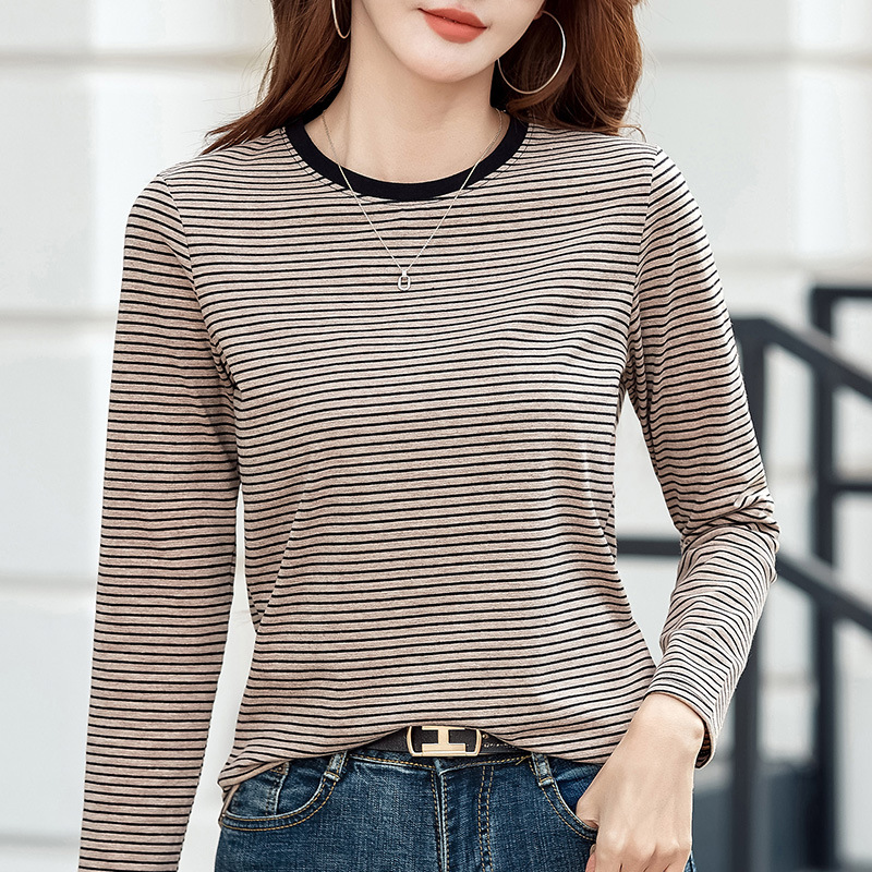 443 둥근 목 줄무늬 긴 소매 티셔츠 여성용 내부 바닥 셔츠 2024 봄 새로운 슈퍼 멋진 최고 기질 슬리밍스토어 가기