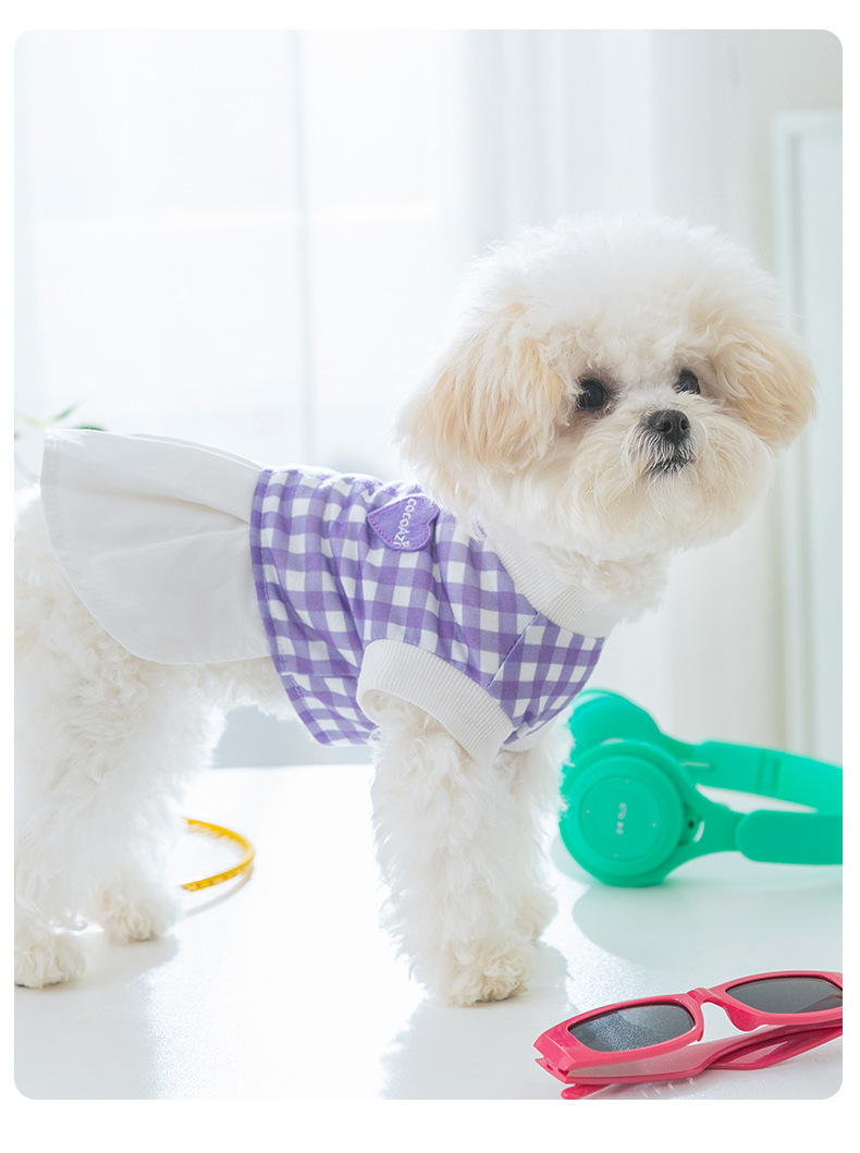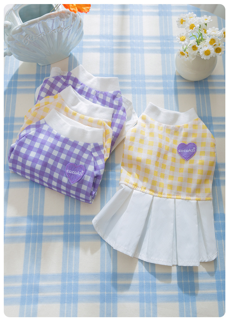 사랑 바둑판 테니스 원피스 작은 개 고양이 부부의 여름 나들이 애완견 옷을 입고스토어 가기