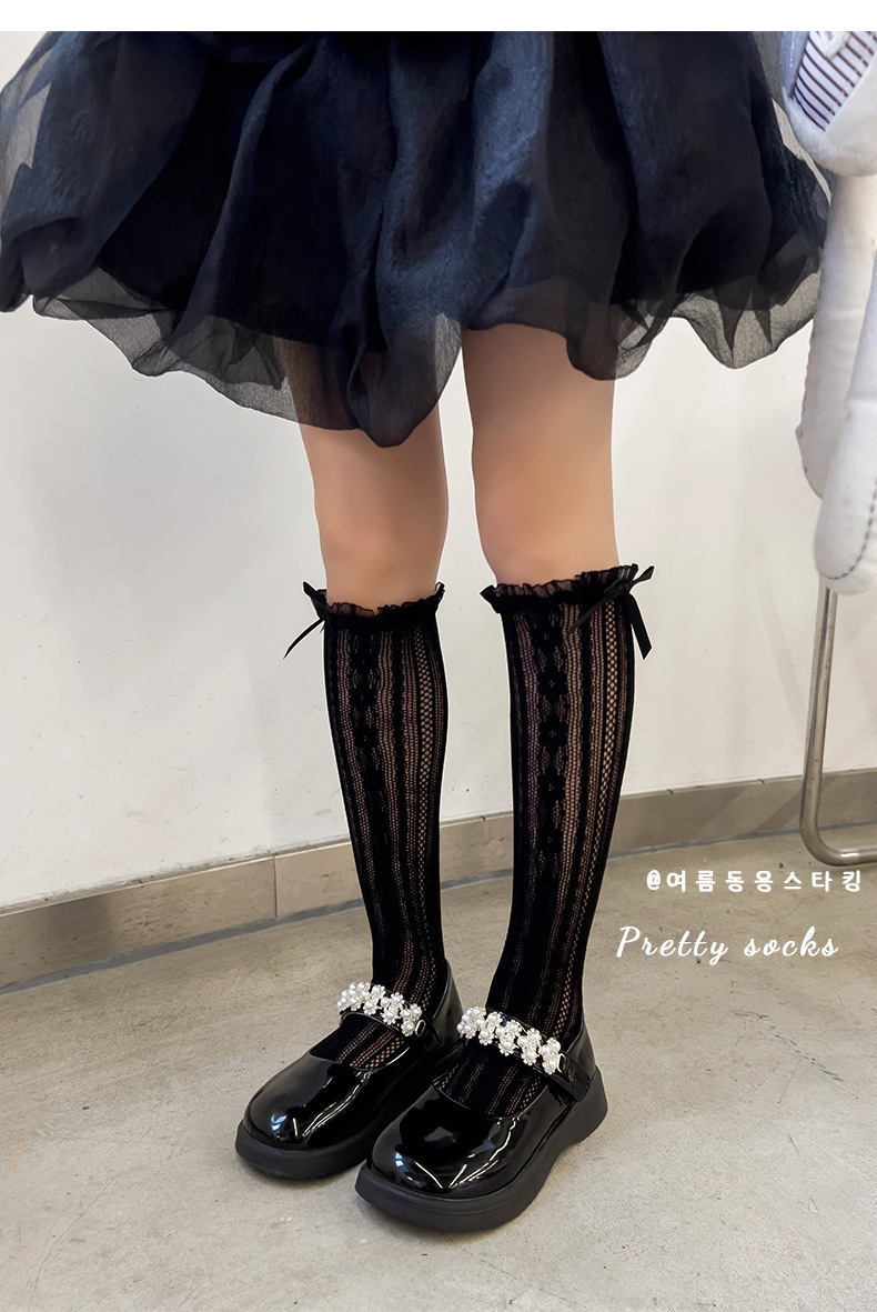 소녀 양말 봄과 여름 얇은 어린이 활 레이스 스타킹 로리타 소녀 공주 종아리 양말