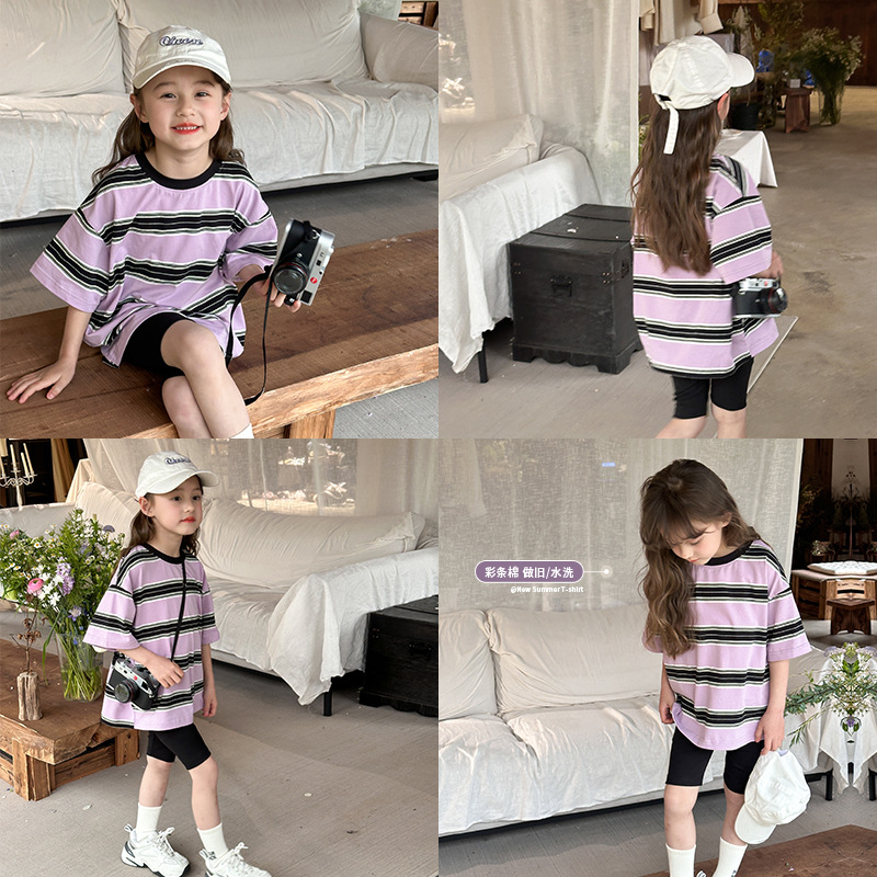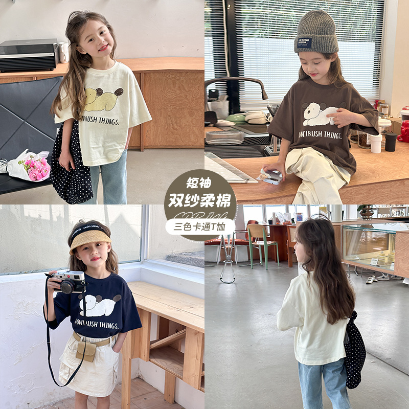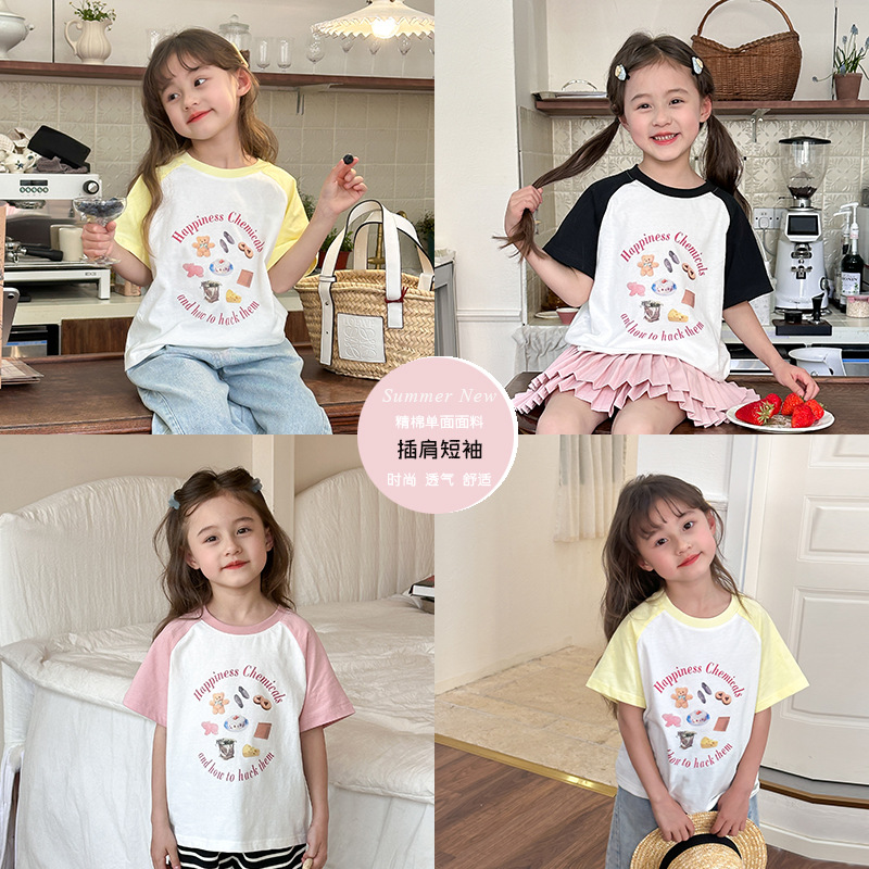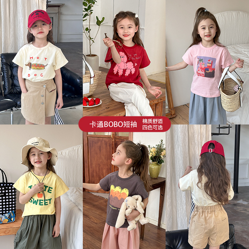 Aimo Beibei 아동복 여름 신작 반팔 여아 베이비 스타일 짧은 달콤한 활 반팔 티셔츠스토어 가기