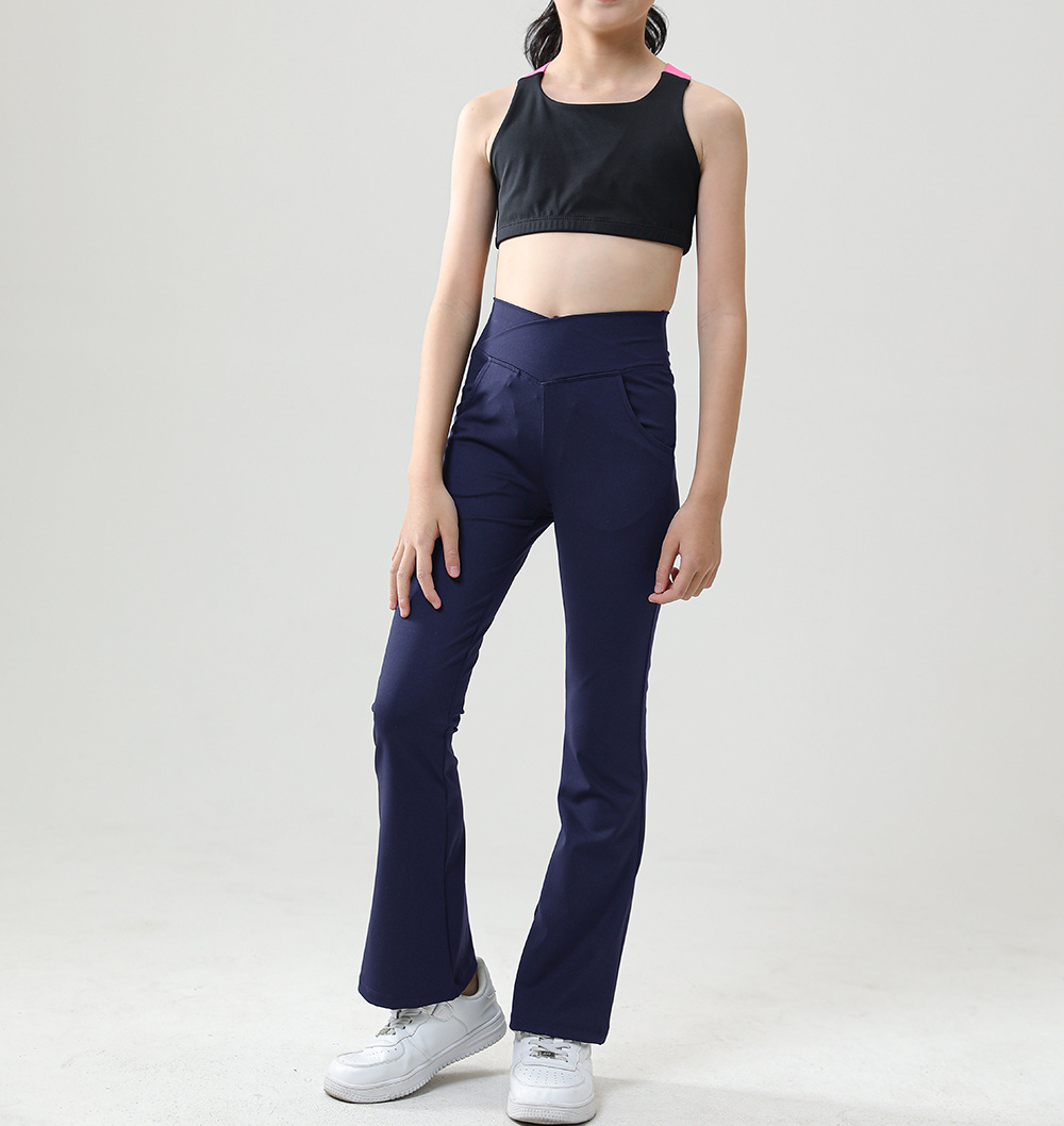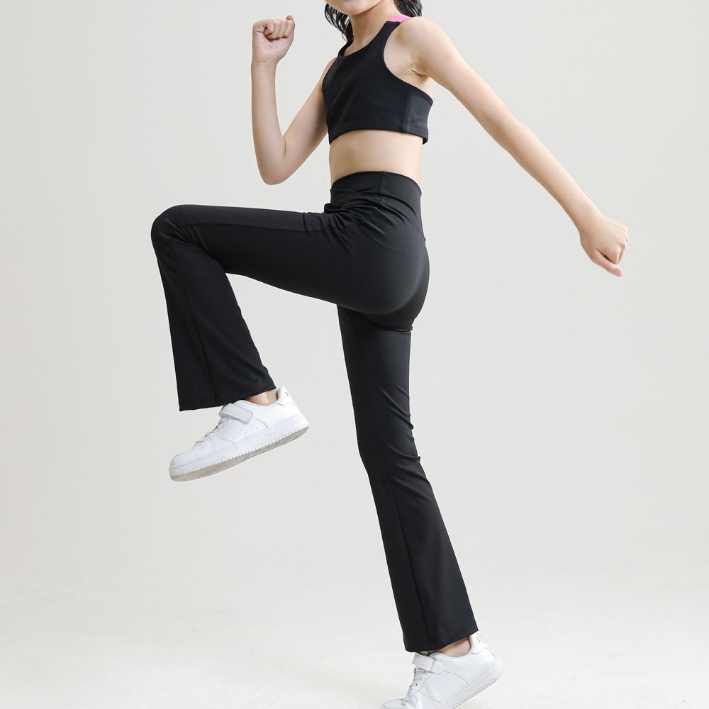 弹力面料:女孩喇叭打底裤由 79% 尼龙和 21% 氨纶面料制成,吸湿排汗、有弹性、透气、快干,让女孩在运动过程中保持干爽舒适