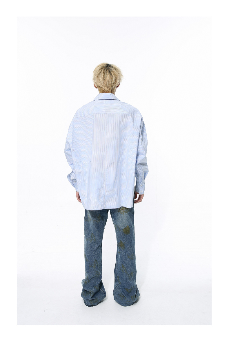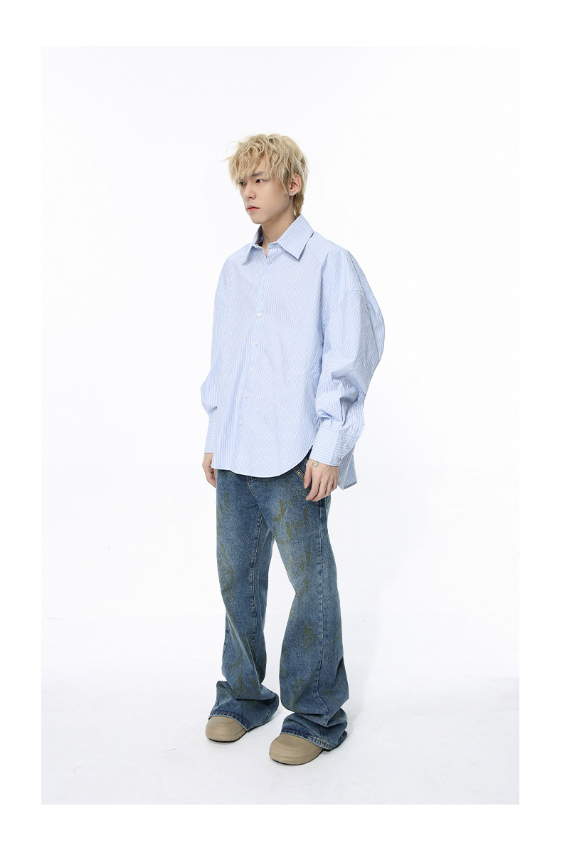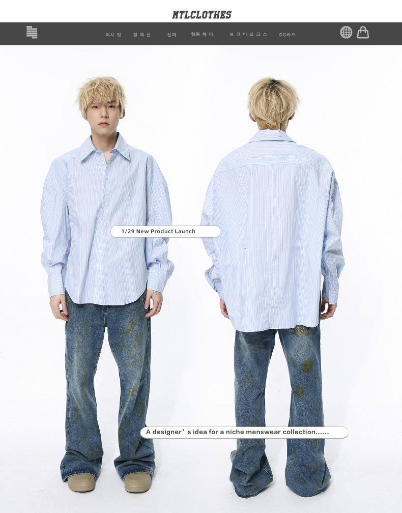MTLCLOTHES 남성복 | 여름 신상품 일본식 신선한 대학풍 스트라이프 가디건 긴팔 셔츠스토어 가기