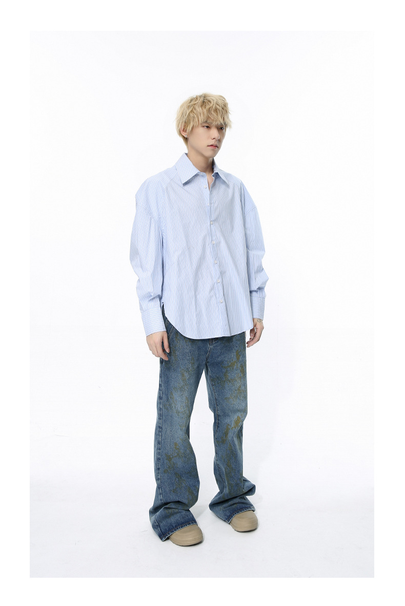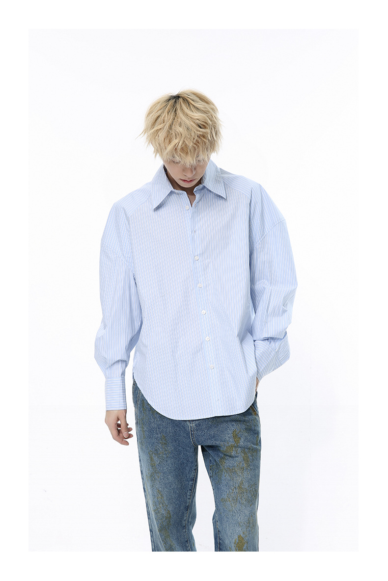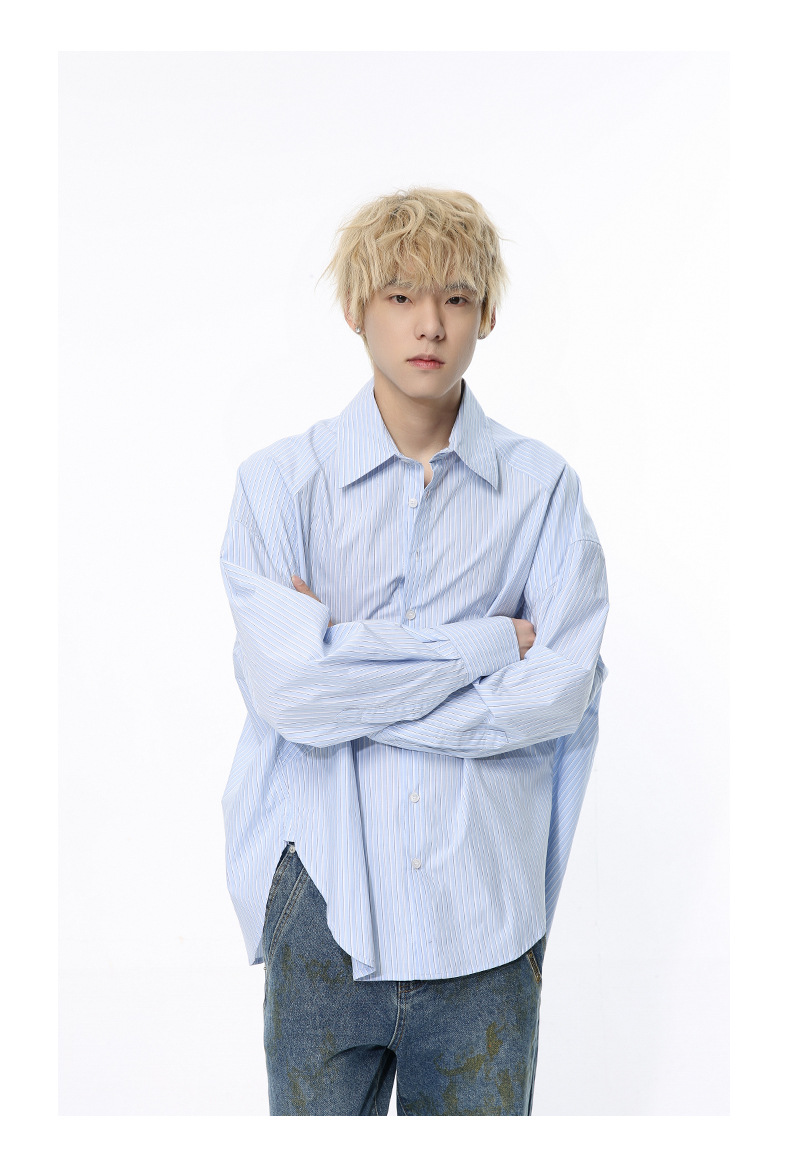 MTLCLOTHES 남성복 | 여름 신상품 일본식 신선한 대학풍 스트라이프 가디건 긴팔 셔츠