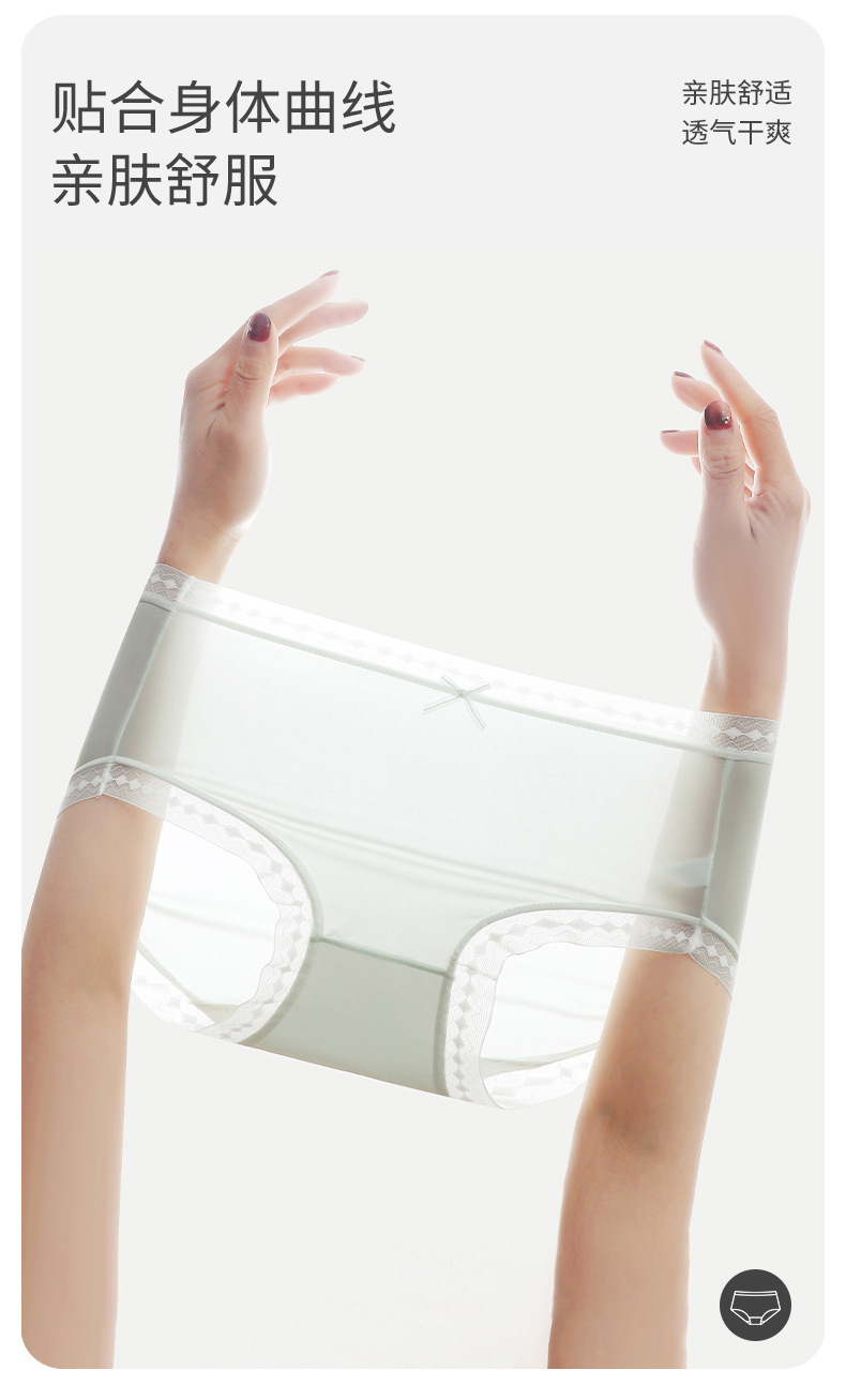아이스 실크 속옷 마스크 바지 여성의 원활한 항균 순수한면 가랑이 중간 허리 소녀 통기성 섹시한 삼각형 반바지