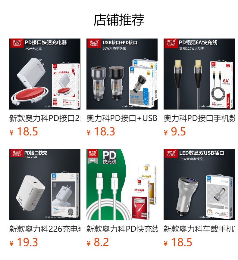 화웨이 샤오미 TYPEC 인터페이스/번개 인터페이스에 적용 가능한 Aolike PD 인터페이스 휴대 전화 빠른 충전 66W스토어 가기