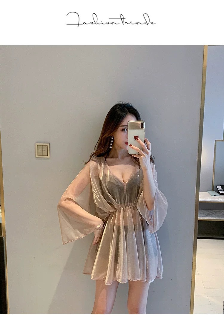 수영복 여성의 새로운 인 비키니 섹시 보수적 인 배꼽 커버 슬리밍 슈퍼 요정 온천 블라우스 3 피스 수영복
