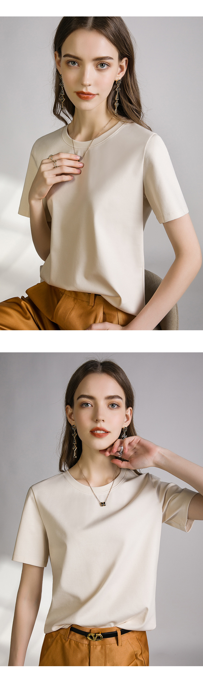 입소문 B 80년대 액체 암모니아 화이트 반팔 오른쪽 어깨 티셔츠 여성용 25 여름 머서라이즈 코튼 V 라운드 넥 바닥 셔츠 티셔츠