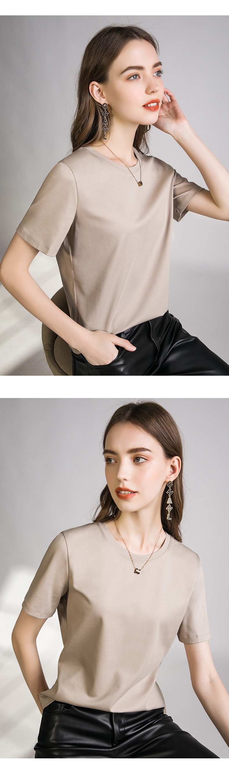 • 우아한 핑크 둥근 목