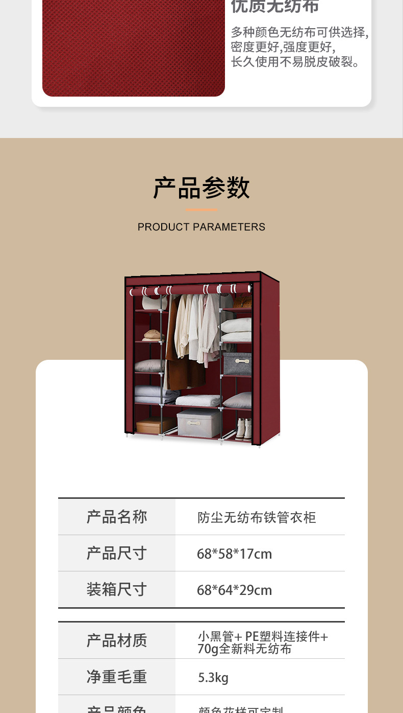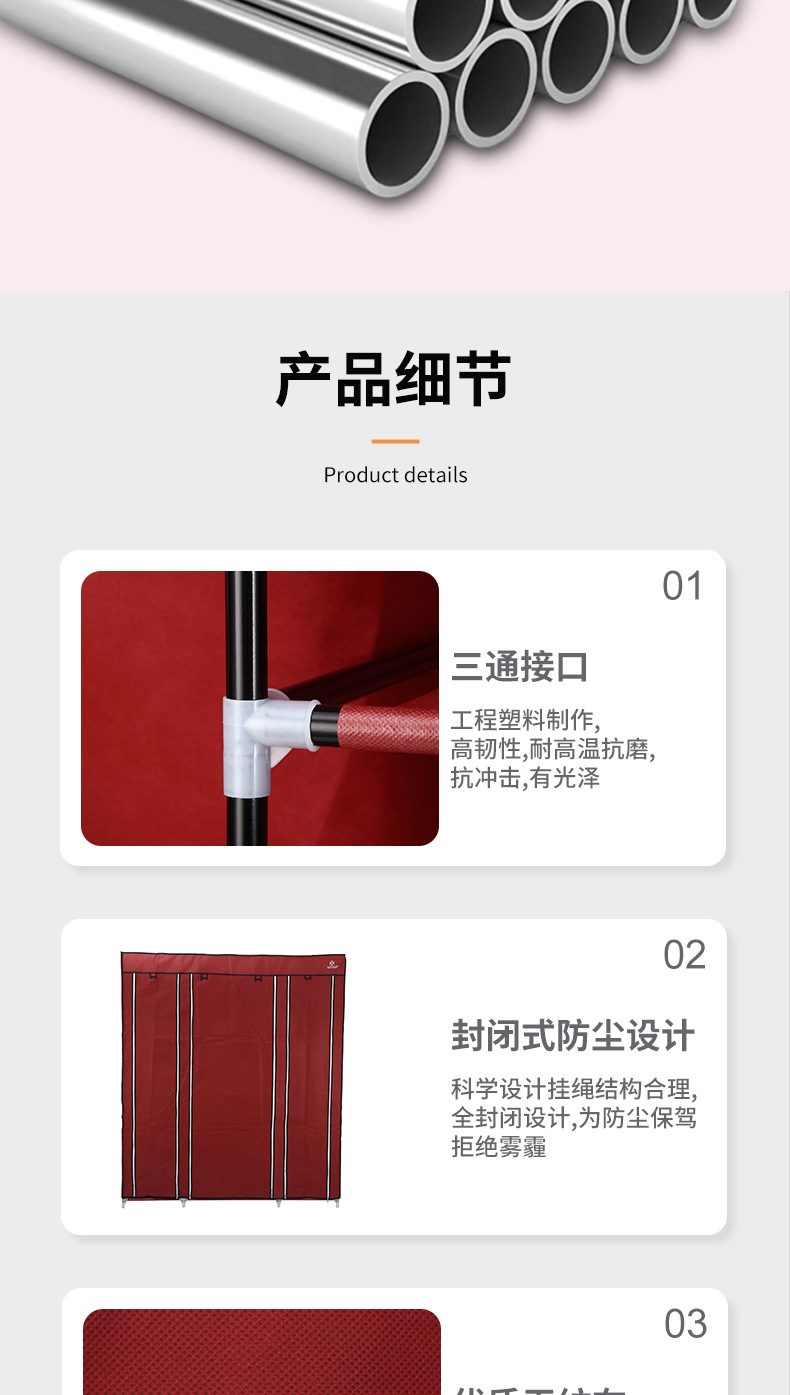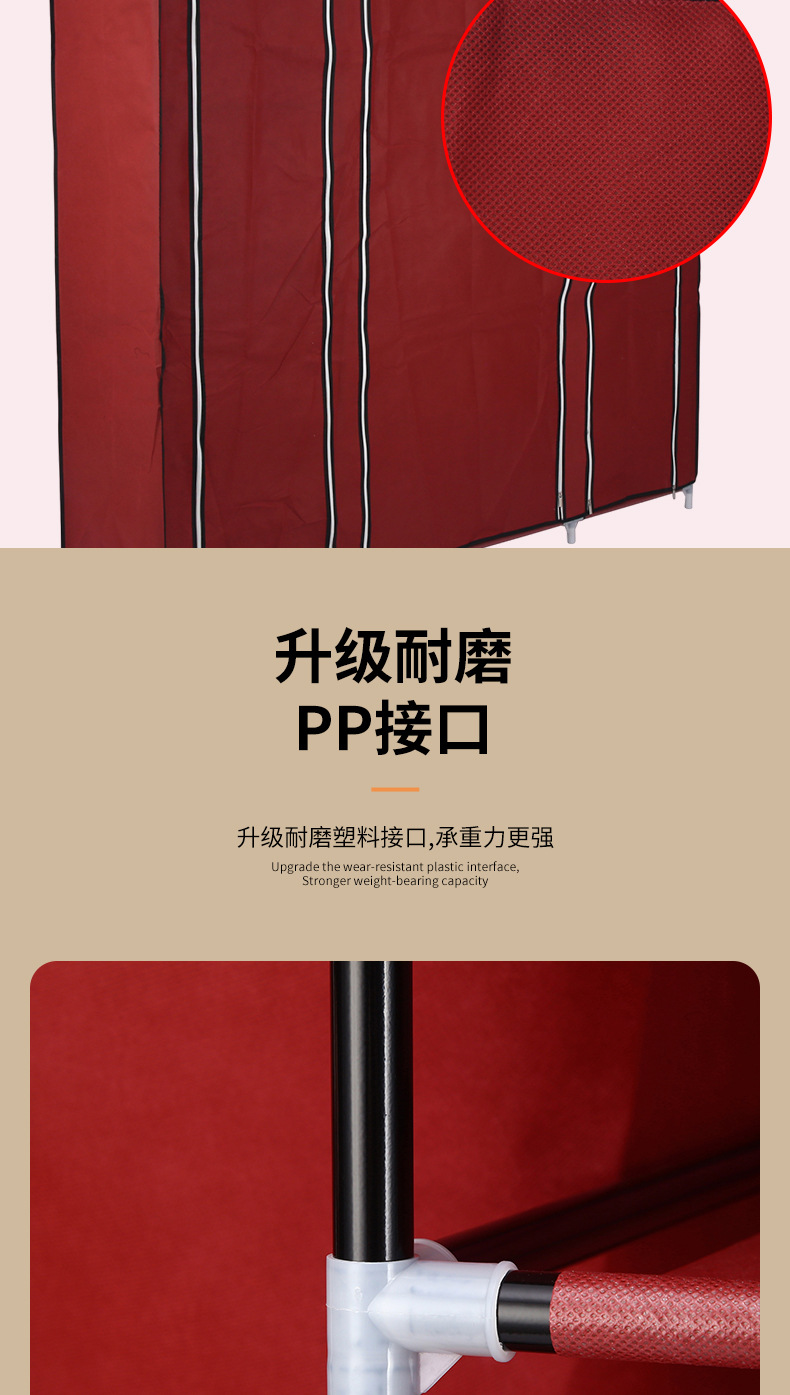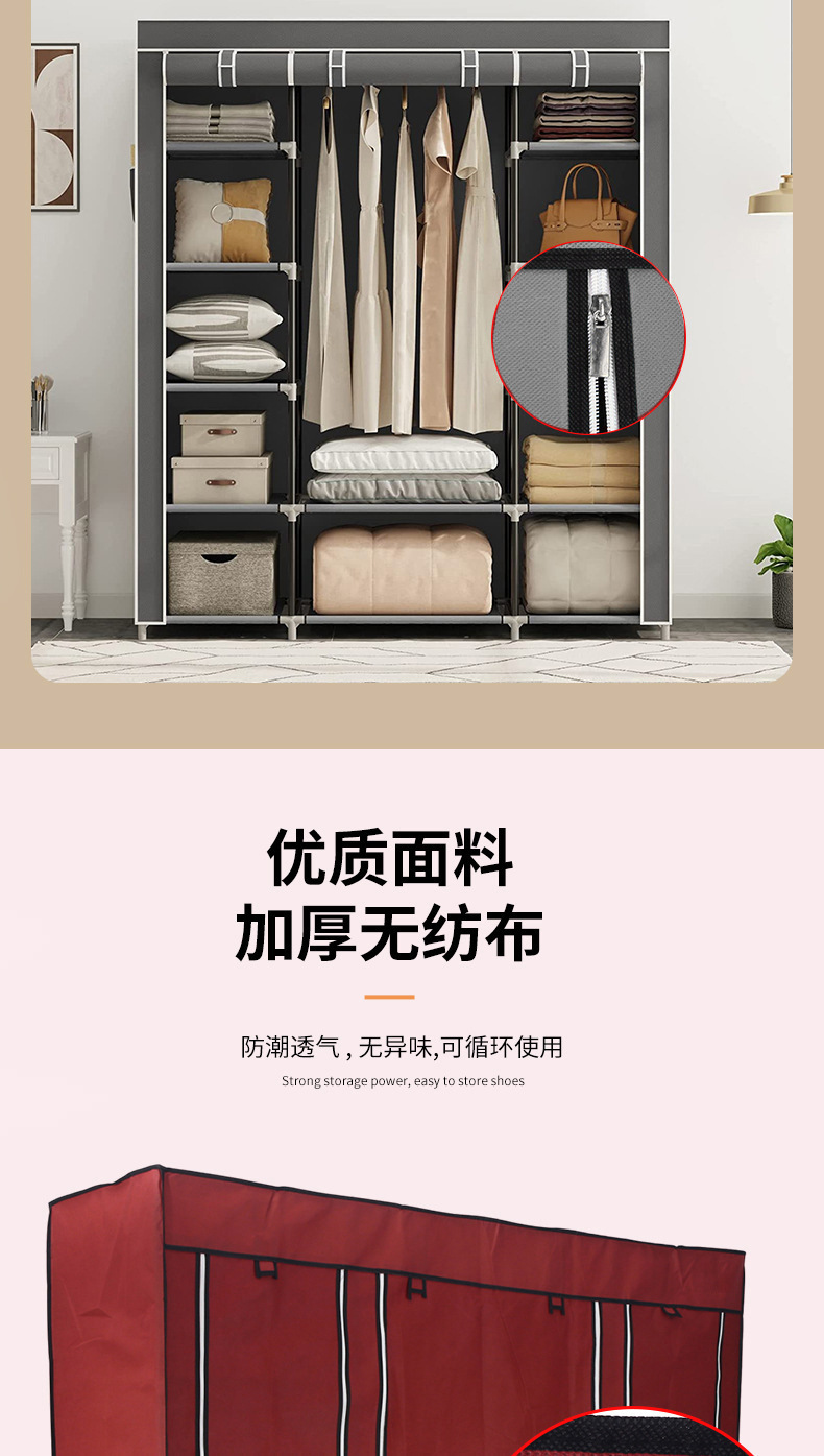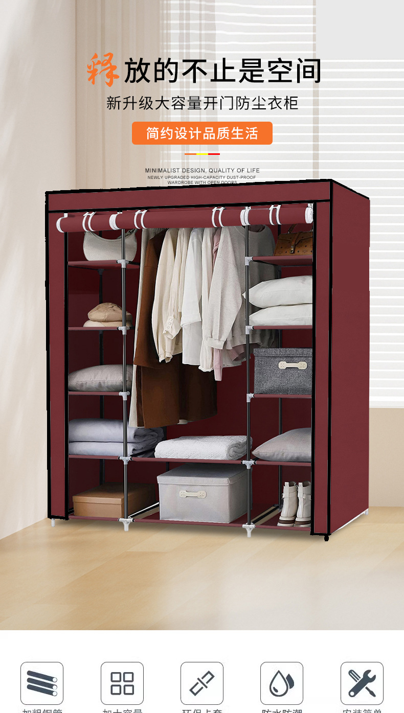 국경 대형 간단한 옷장 임대 주택 접이식 옷장 방진 천 옷장 스틸 튜브 셔터 보관 캐비닛 도매