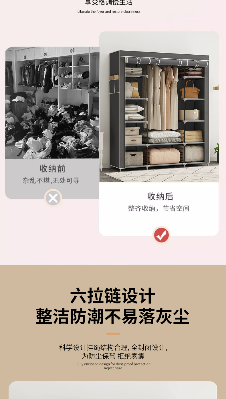 국경 대형 간단한 옷장 임대 주택 접이식 옷장 방진 천 옷장 스틸 튜브 셔터 보관 캐비닛 도매스토어 가기