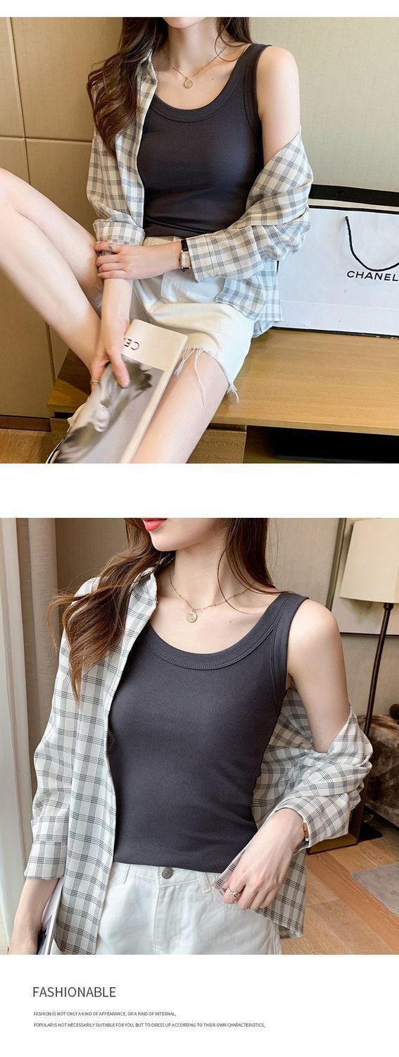 봄 새로운 안티 노출 슬림 핏 프랑스 조끼 2024 새로운 스레드 스트랩 세트 민소매 탑