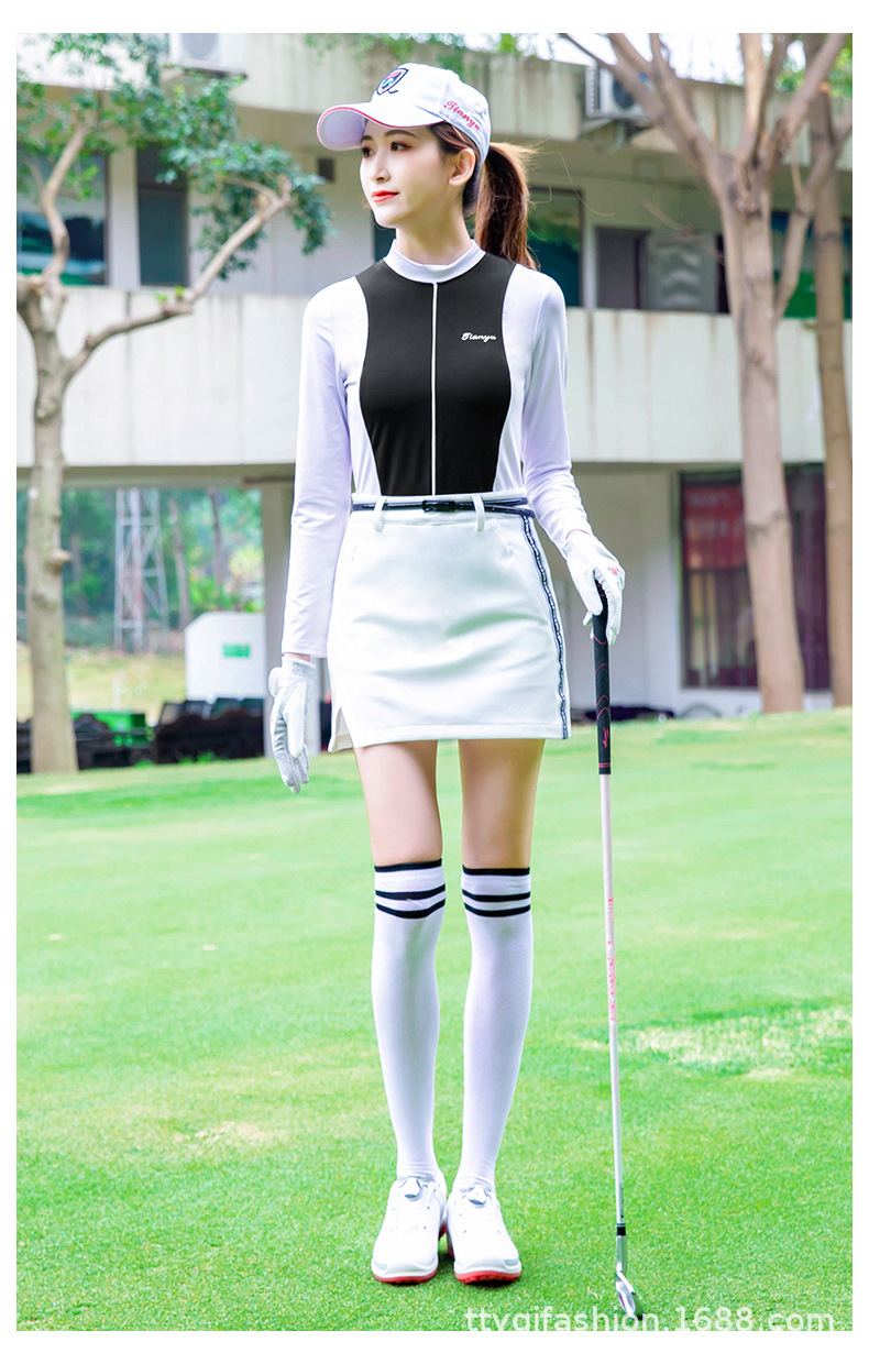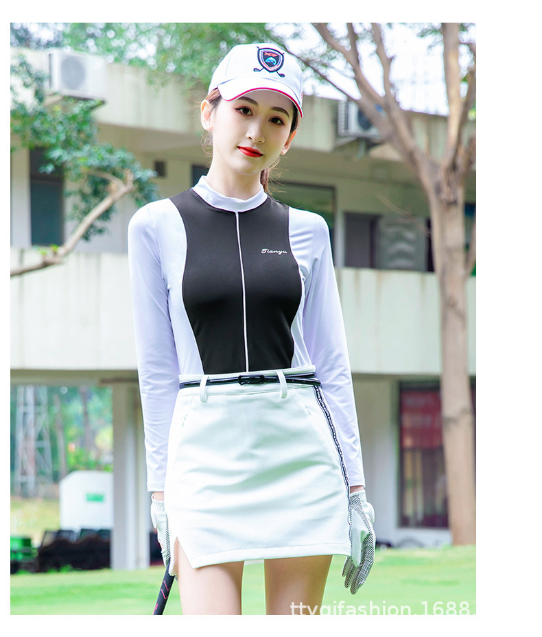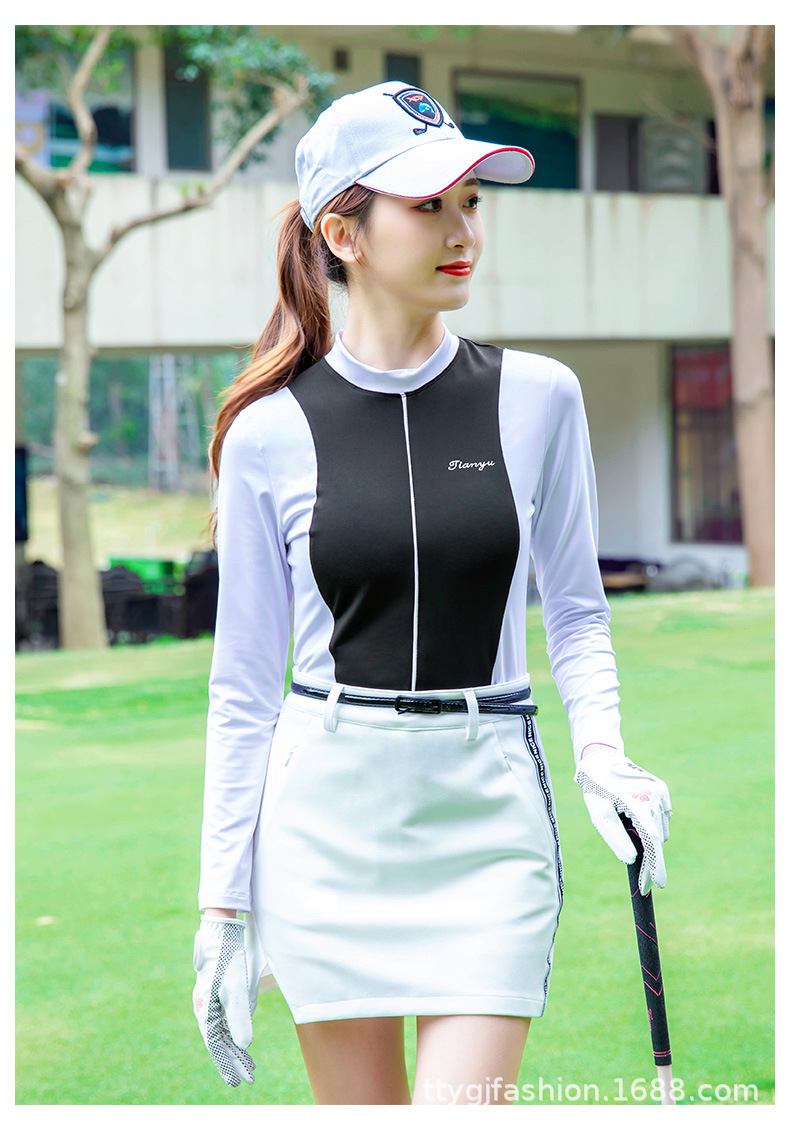 TTYGJ 가을, 겨울 골프 여성 의류 슬림 피트 긴팔 티셔츠 스플 라이스 대비 색 스포츠 바닥 탑스토어 가기