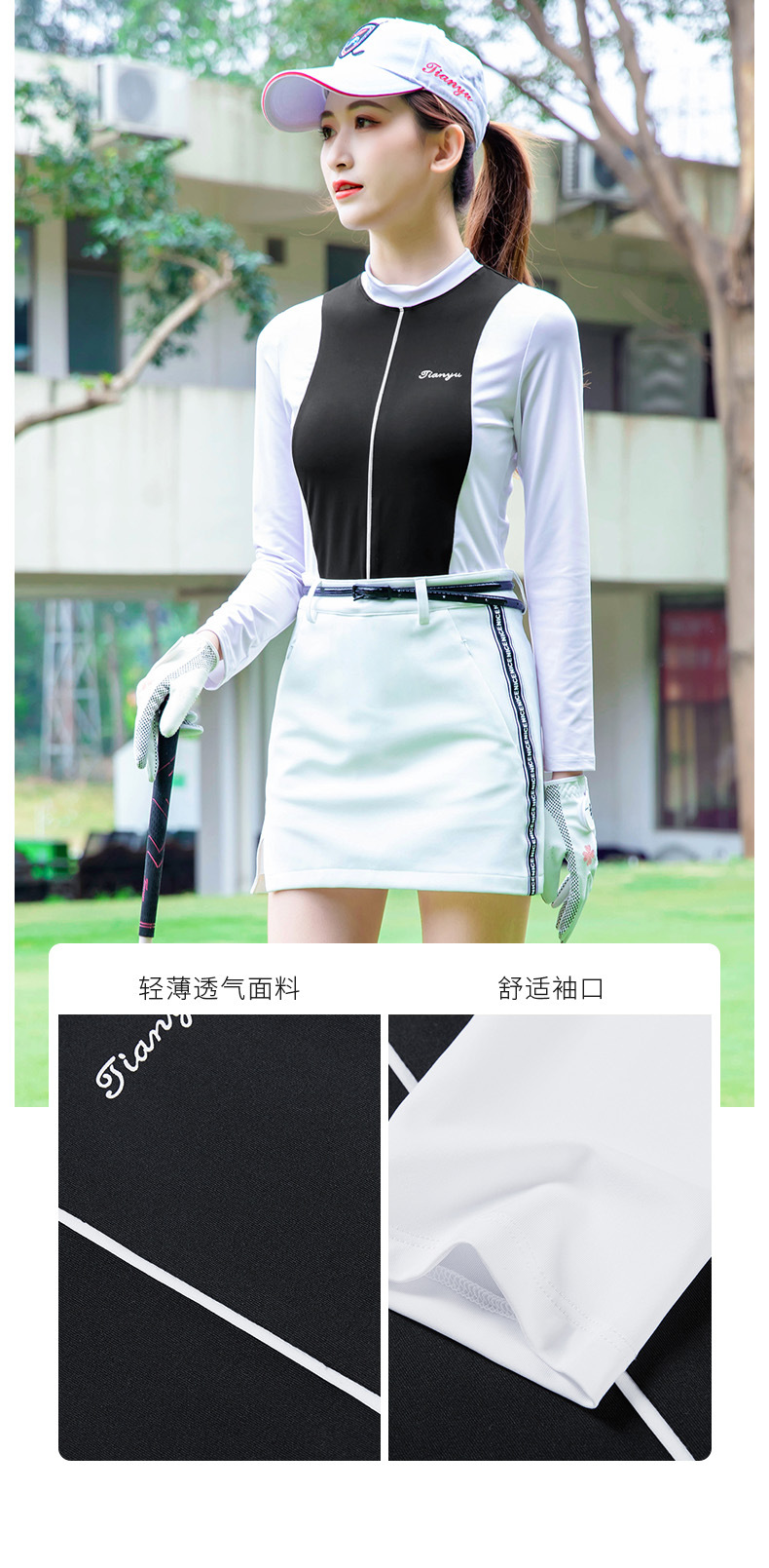 TTYGJ 가을, 겨울 골프 여성 의류 슬림 피트 긴팔 티셔츠 스플 라이스 대비 색 스포츠 바닥 탑