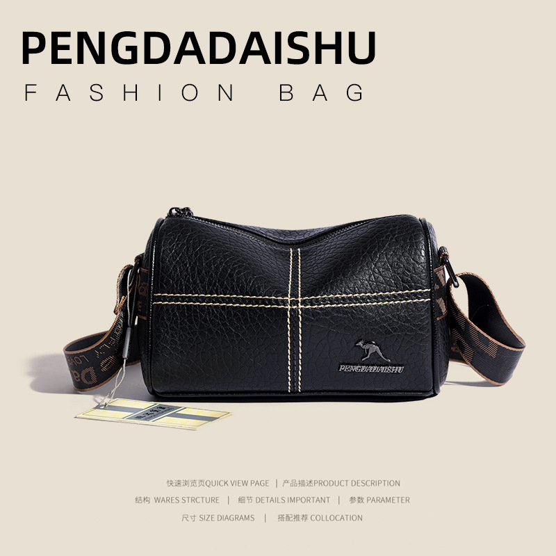 국경 간 한국식 패션 가방 여성의 정품 가죽 질감 숄더백 트렌디 한 올 매치 크로스 바디 여성 가방 와이드 숄더스트랩 베개 가방