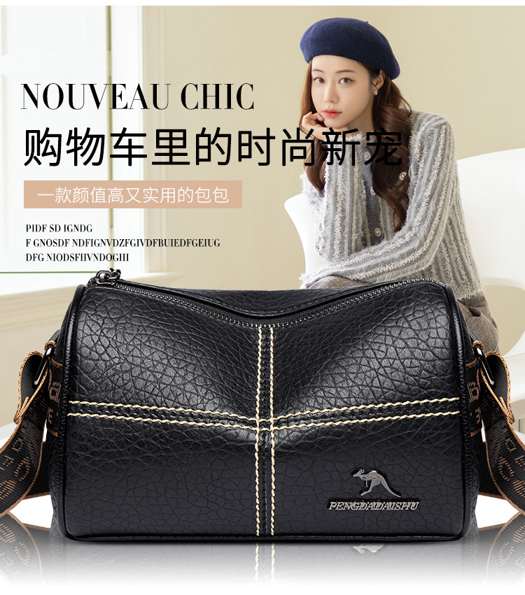 국경 간 한국식 패션 가방 여성의 정품 가죽 질감 숄더백 트렌디 한 올 매치 크로스 바디 여성 가방 와이드 숄더스트랩 베개 가방스토어 가기