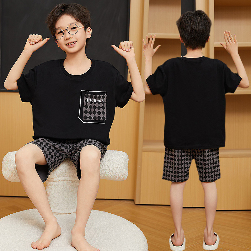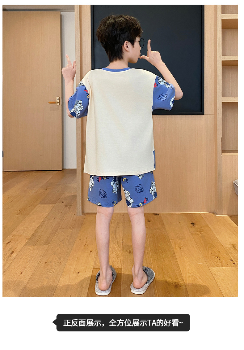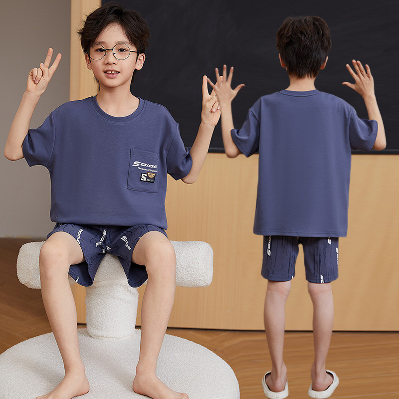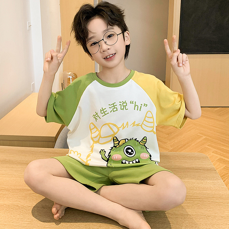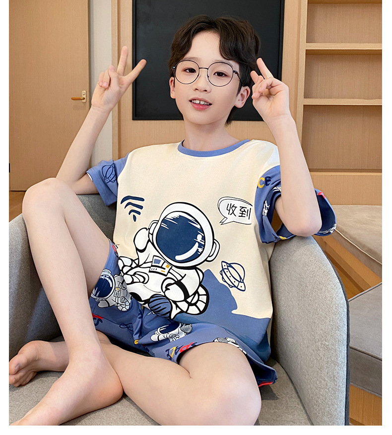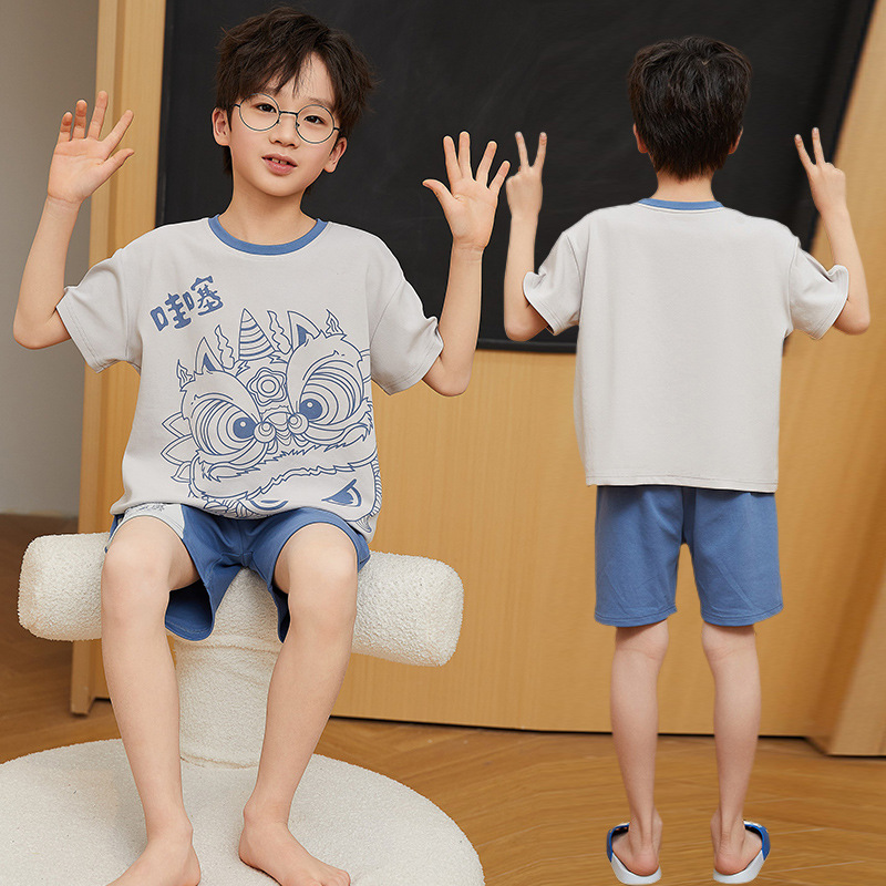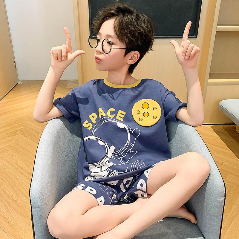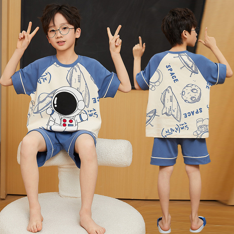2025 새로운 소년 잠옷 어린이 봄과 여름 순면 십대를위한 반팔 얇은 가정 옷