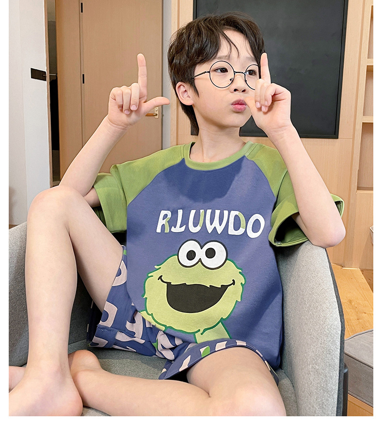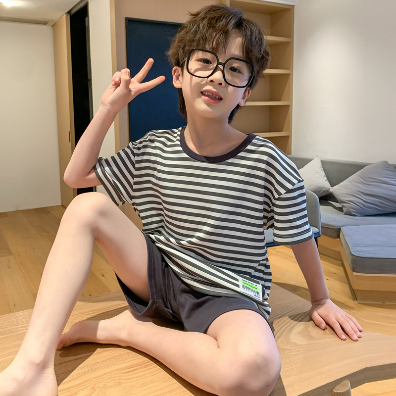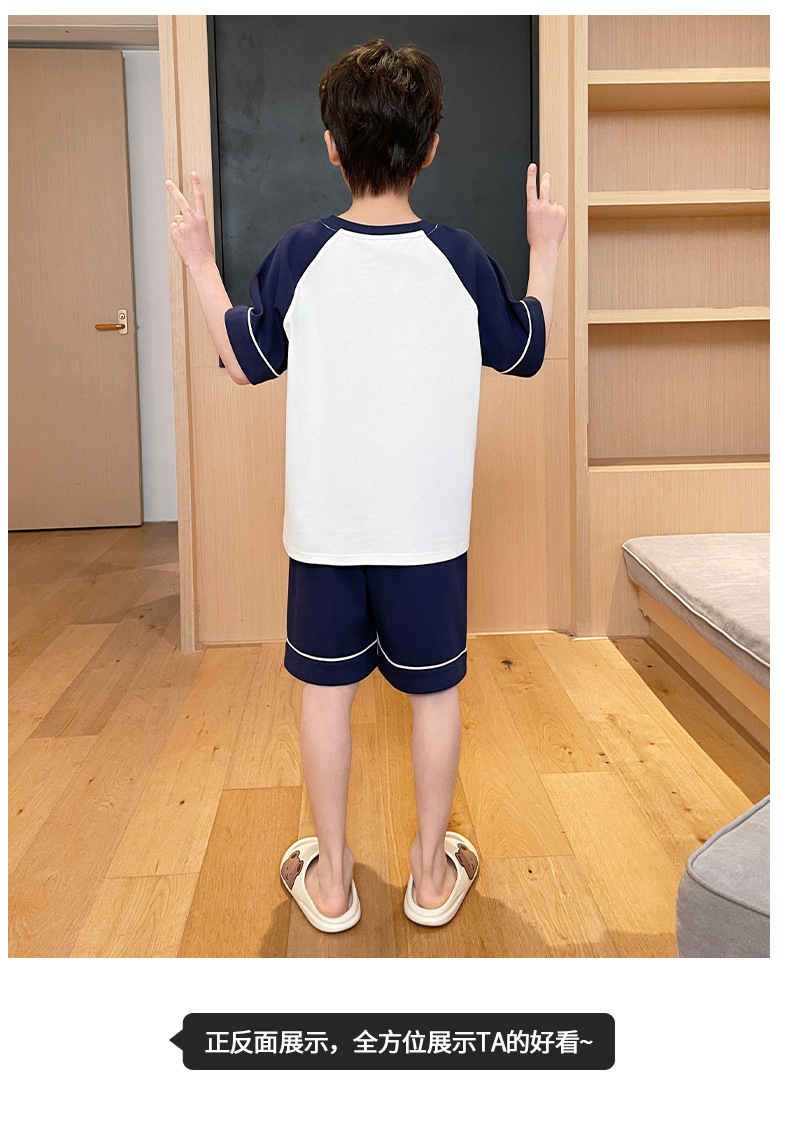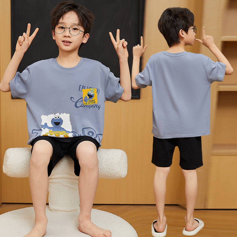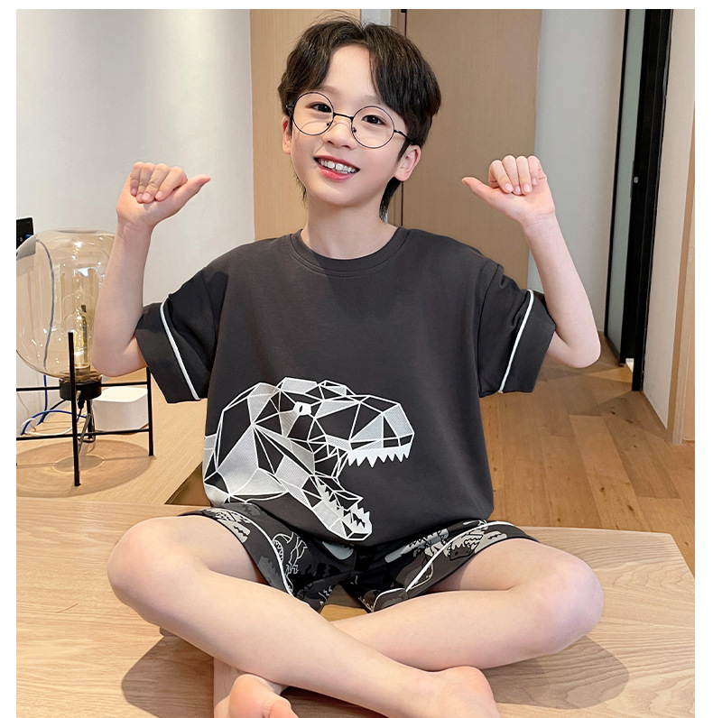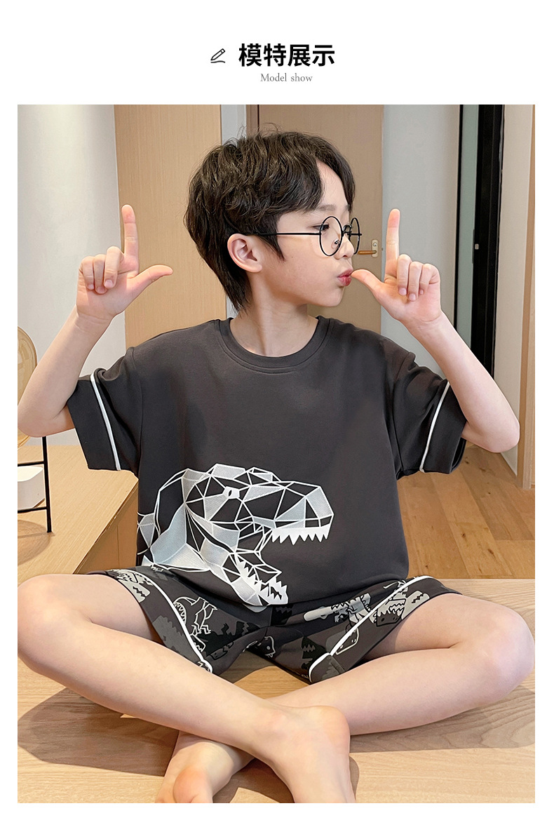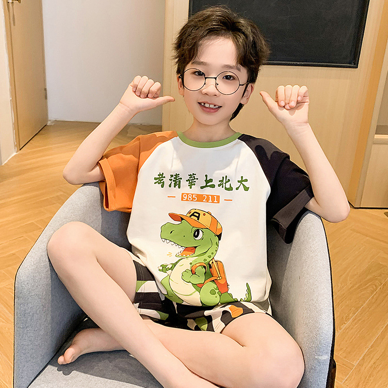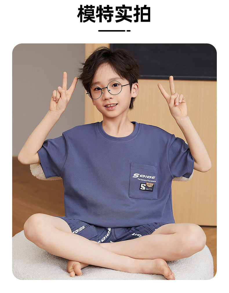 2025 새로운 소년 잠옷 어린이 봄과 여름 순면 십대를위한 반팔 얇은 가정 옷