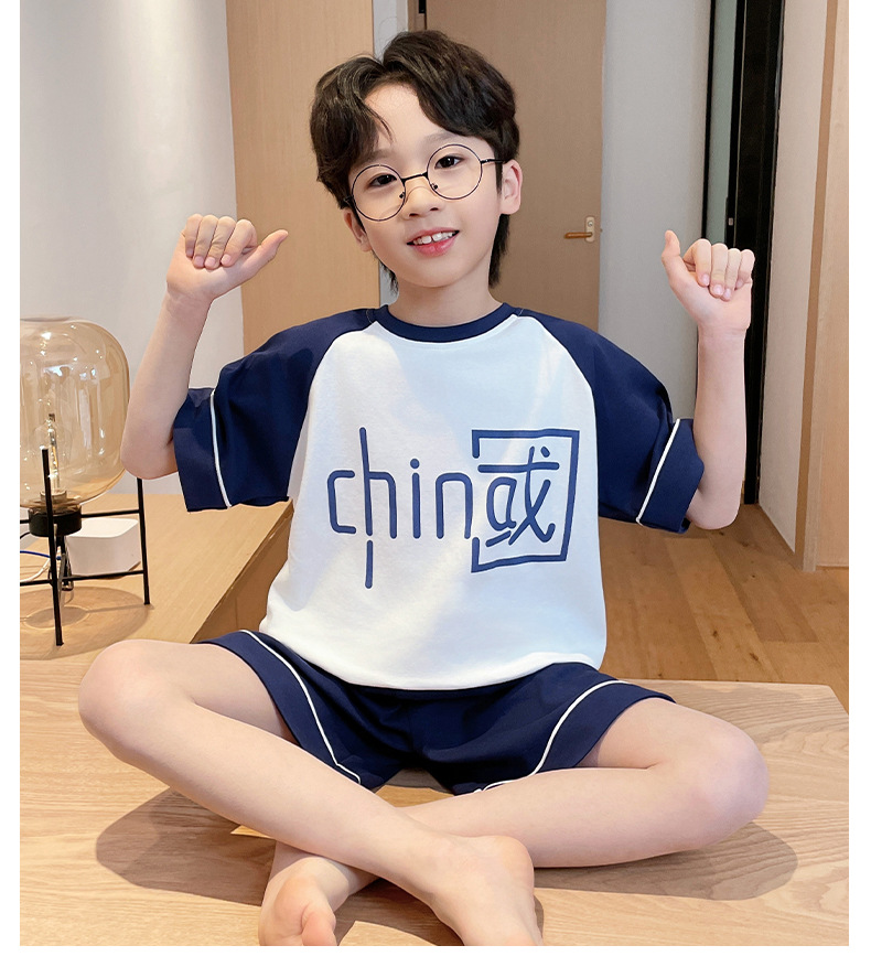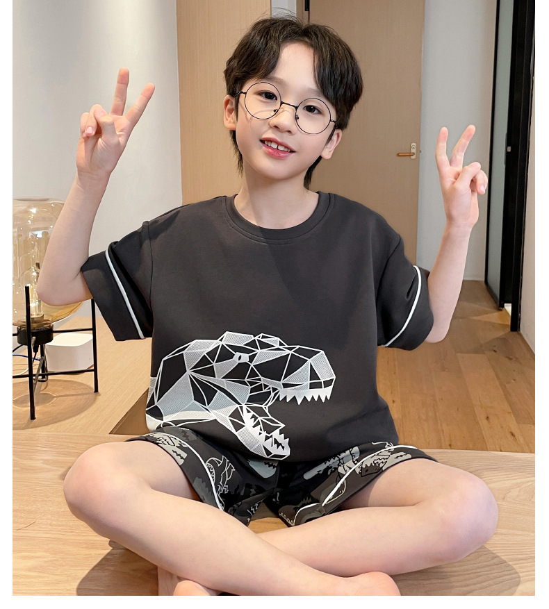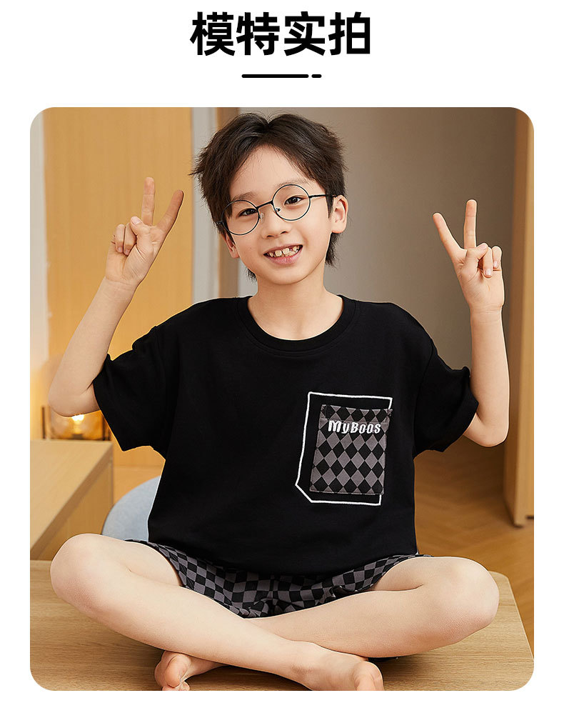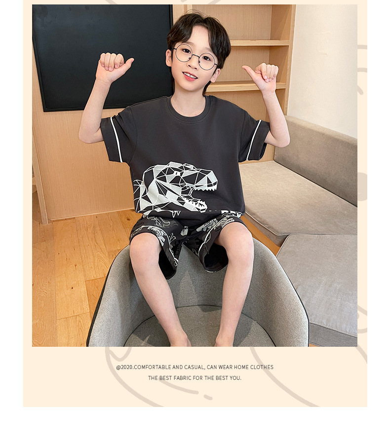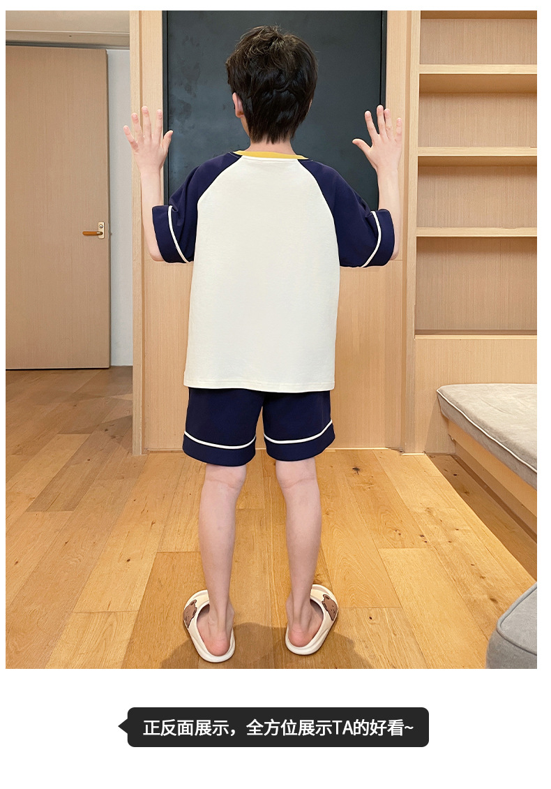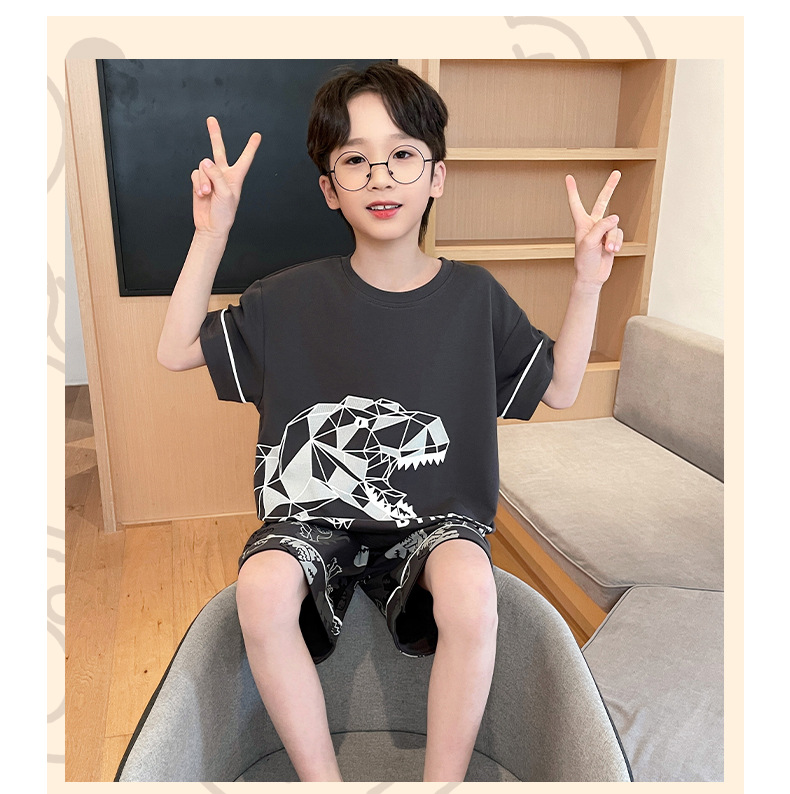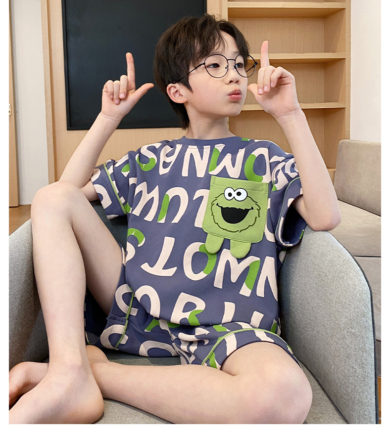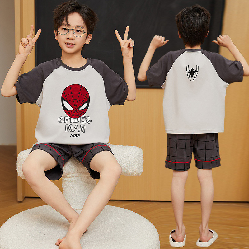 2025 새로운 소년 잠옷 어린이 봄과 여름 순면 십대를위한 반팔 얇은 가정 옷