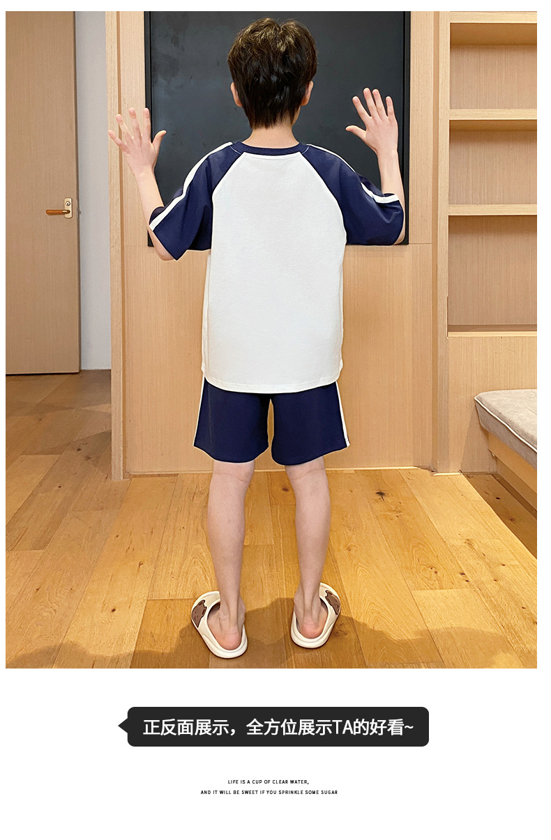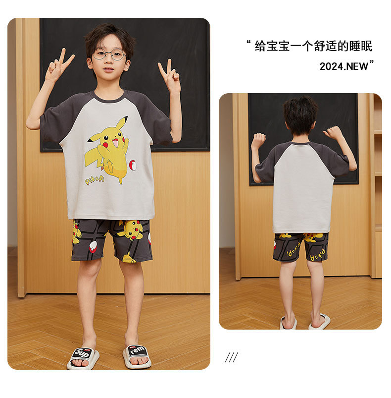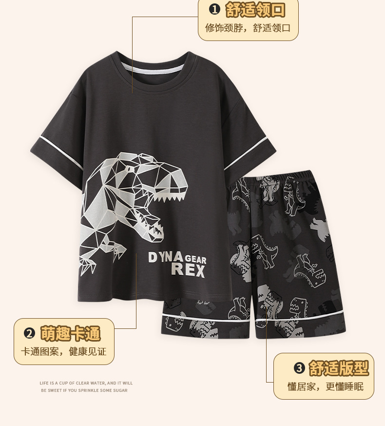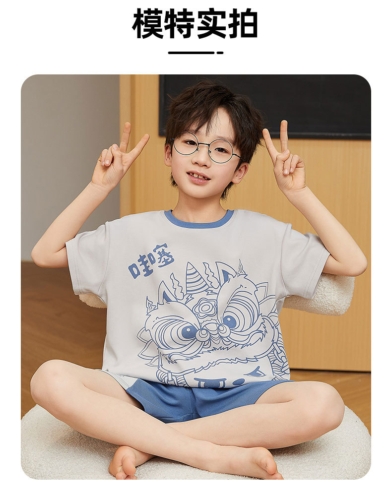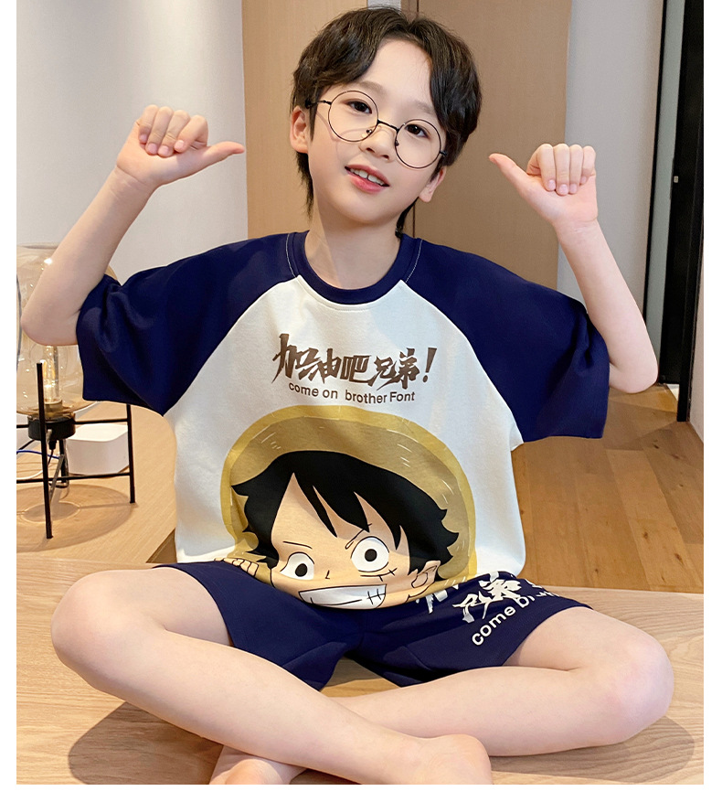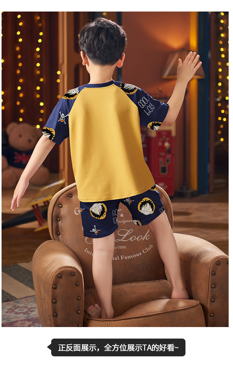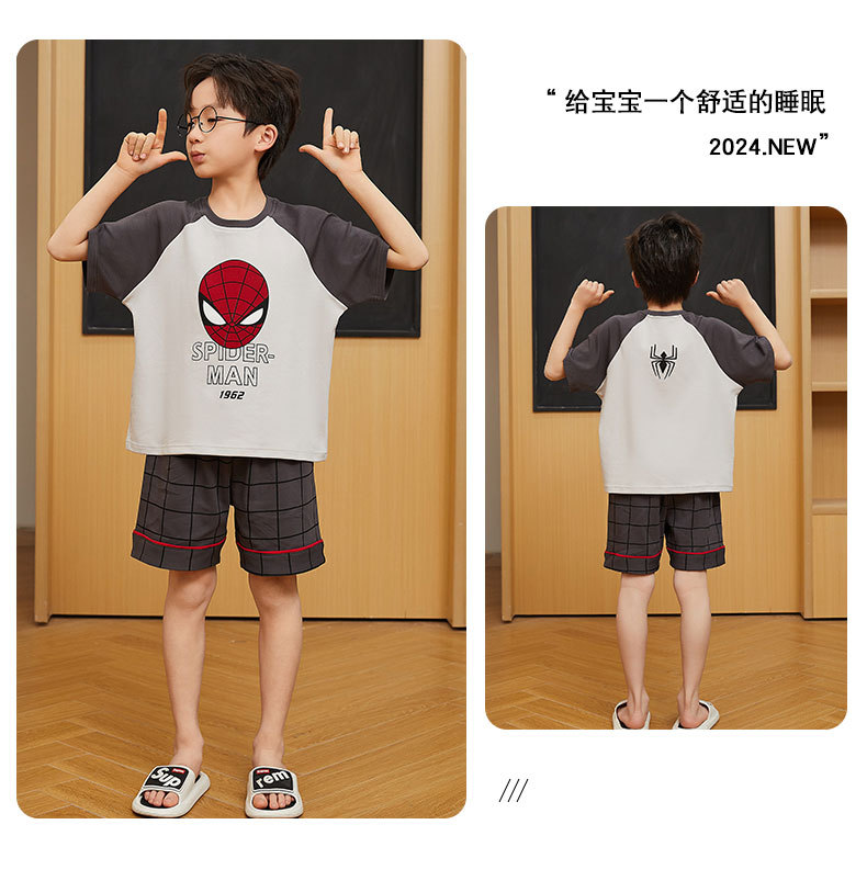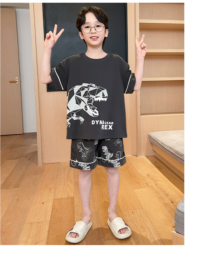2025 새로운 소년 잠옷 어린이 봄과 여름 순면 십대를위한 반팔 얇은 가정 옷