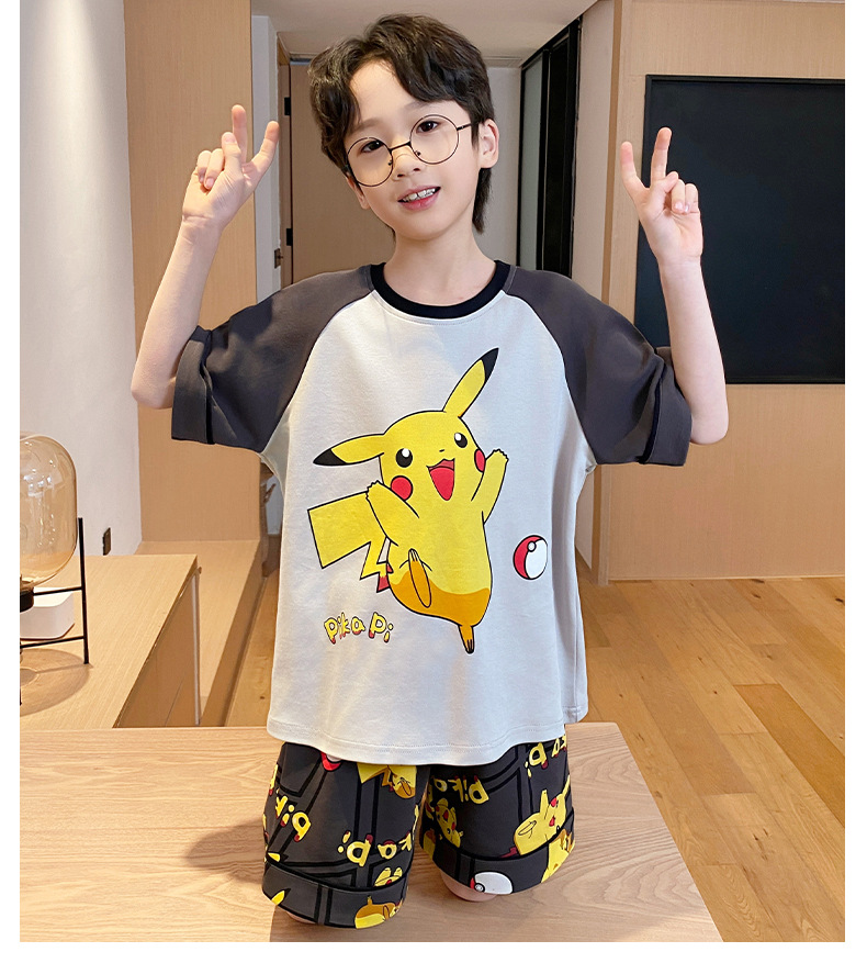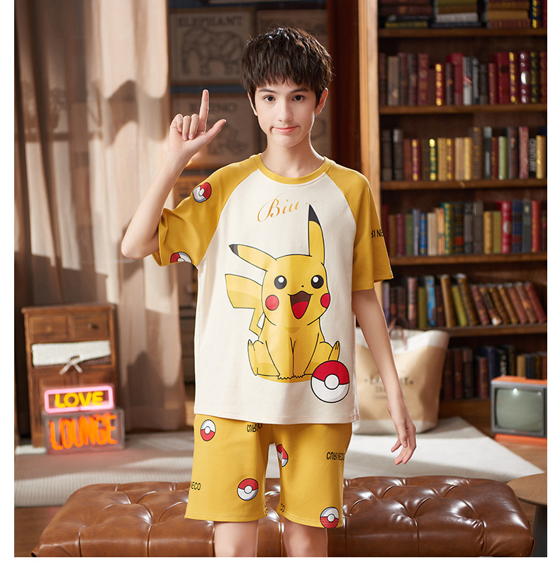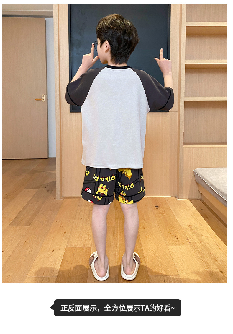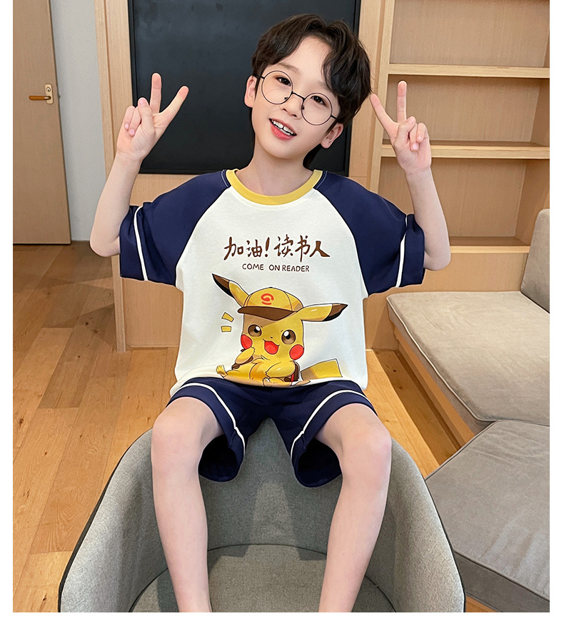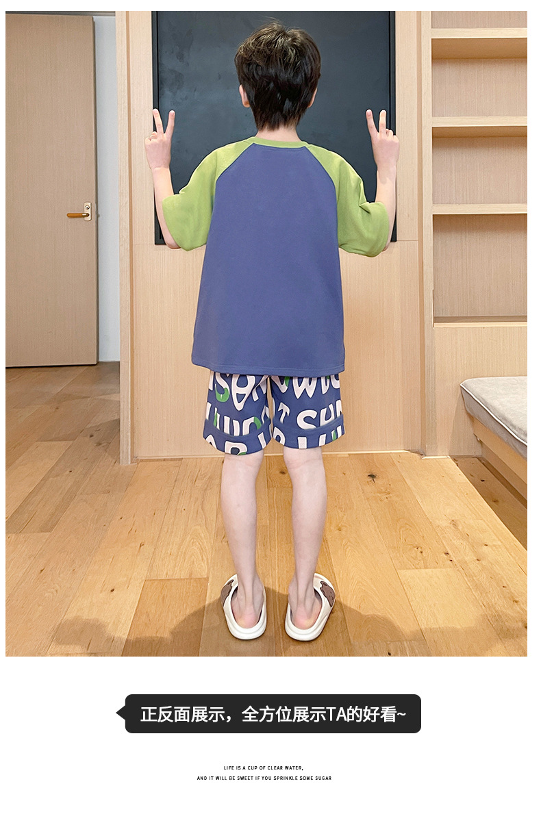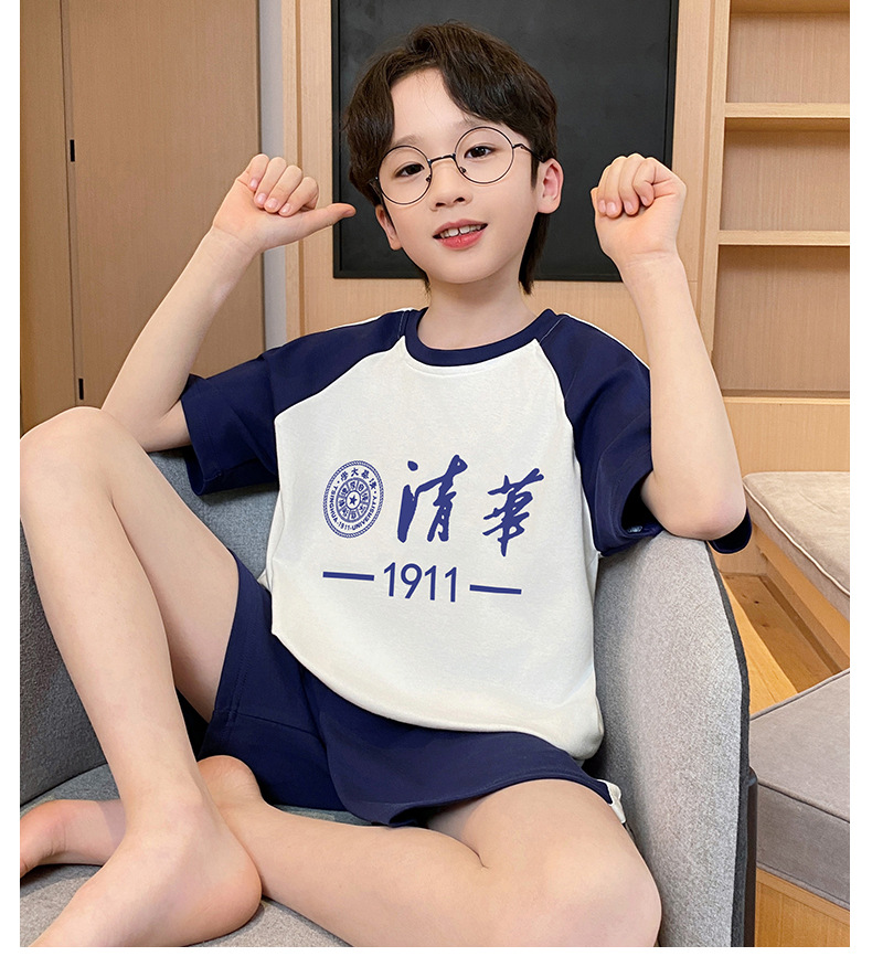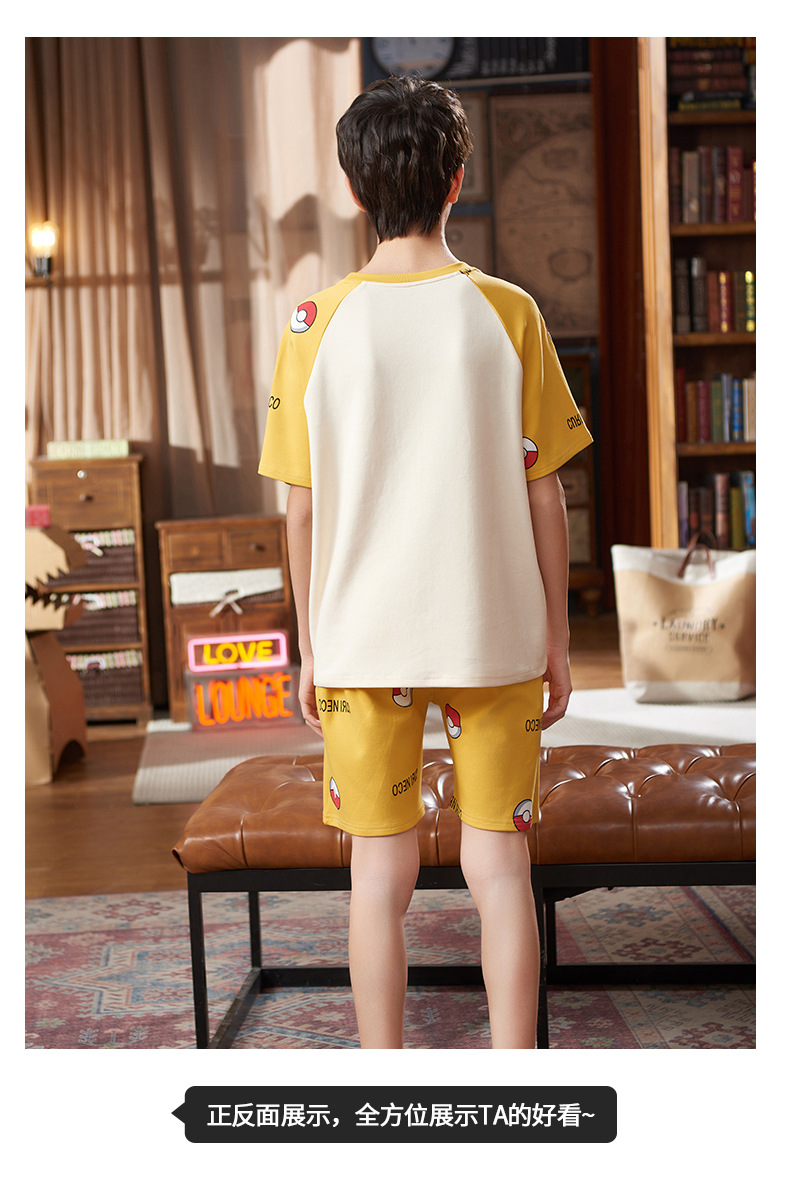 2025 새로운 소년 잠옷 어린이 봄과 여름 순면 십대를위한 반팔 얇은 가정 옷