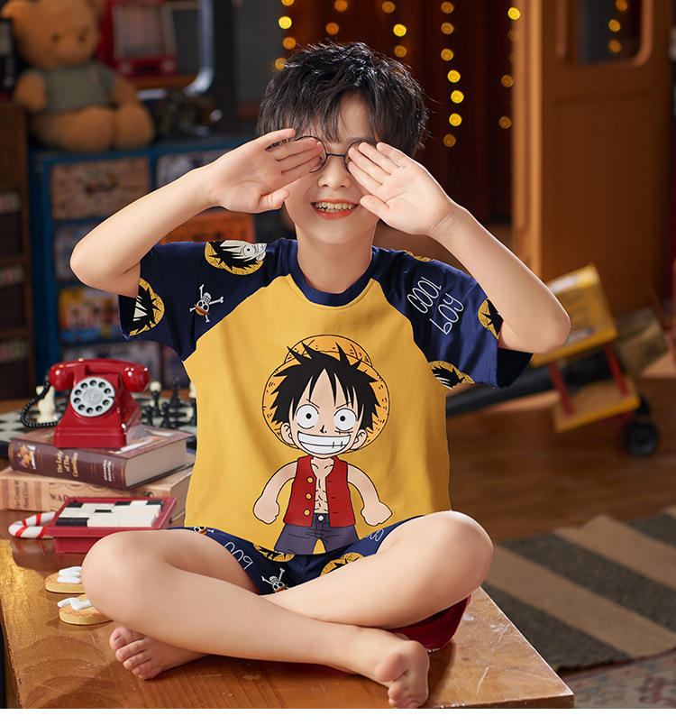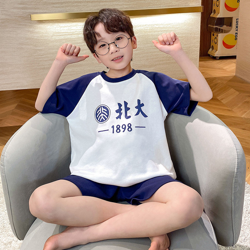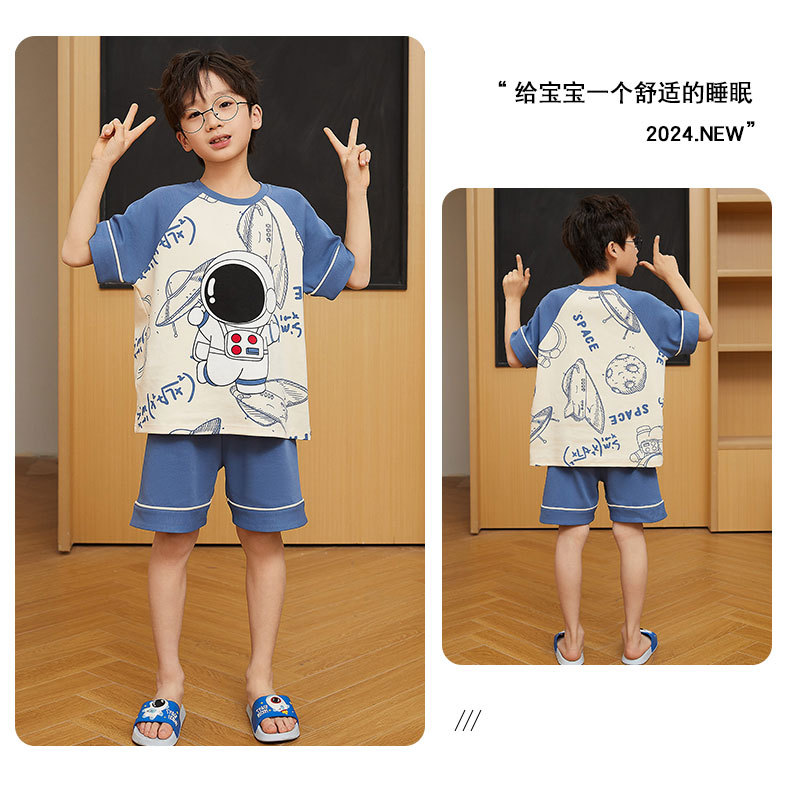 2025 새로운 소년 잠옷 어린이 봄과 여름 순면 십대를위한 반팔 얇은 가정 옷스토어 가기