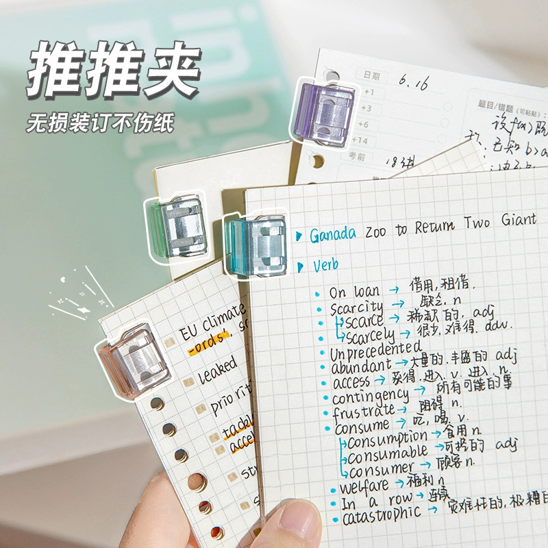 푸시 클립 투명 컬러 작은 클립 사무실 파일 슬라이드 클립 학생 테스트 종이 재료 저장 고정 푸시 클립스토어 가기