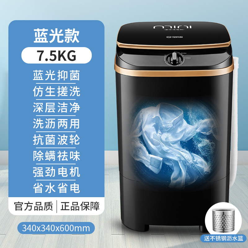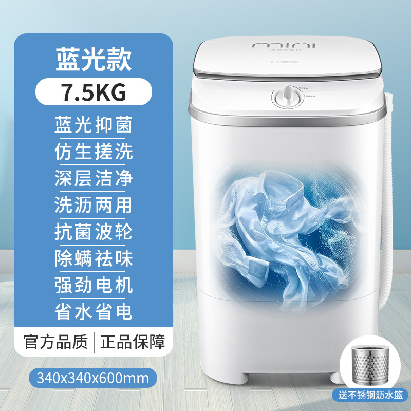 새로운 가정용 세탁기 7.5KG 반자동 세탁기 다운 재킷 블루 라이트 세척 통합 강철 배수 바구니