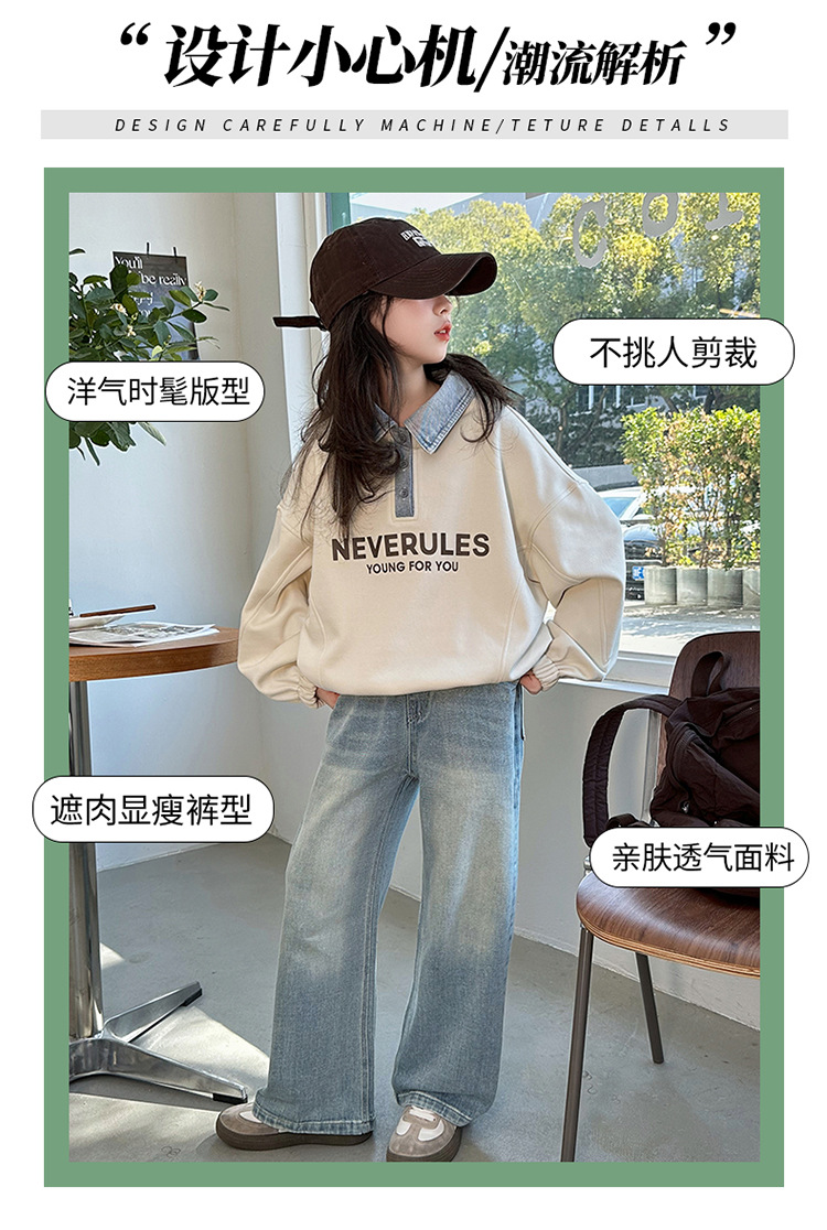 여아 봄 의류 세트 2025 새로운 스타일 한국 스타일 패셔너블 캐주얼 폴로 셔츠 스웨트 셔츠 청바지 투피스 세트스토어 가기