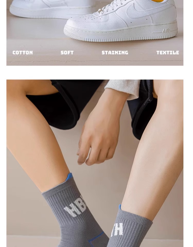 고등학생 남성용 순면 중목 양말 봄 가을 청소년 스포츠 러닝 방취 무봉제 롱 양말 도매