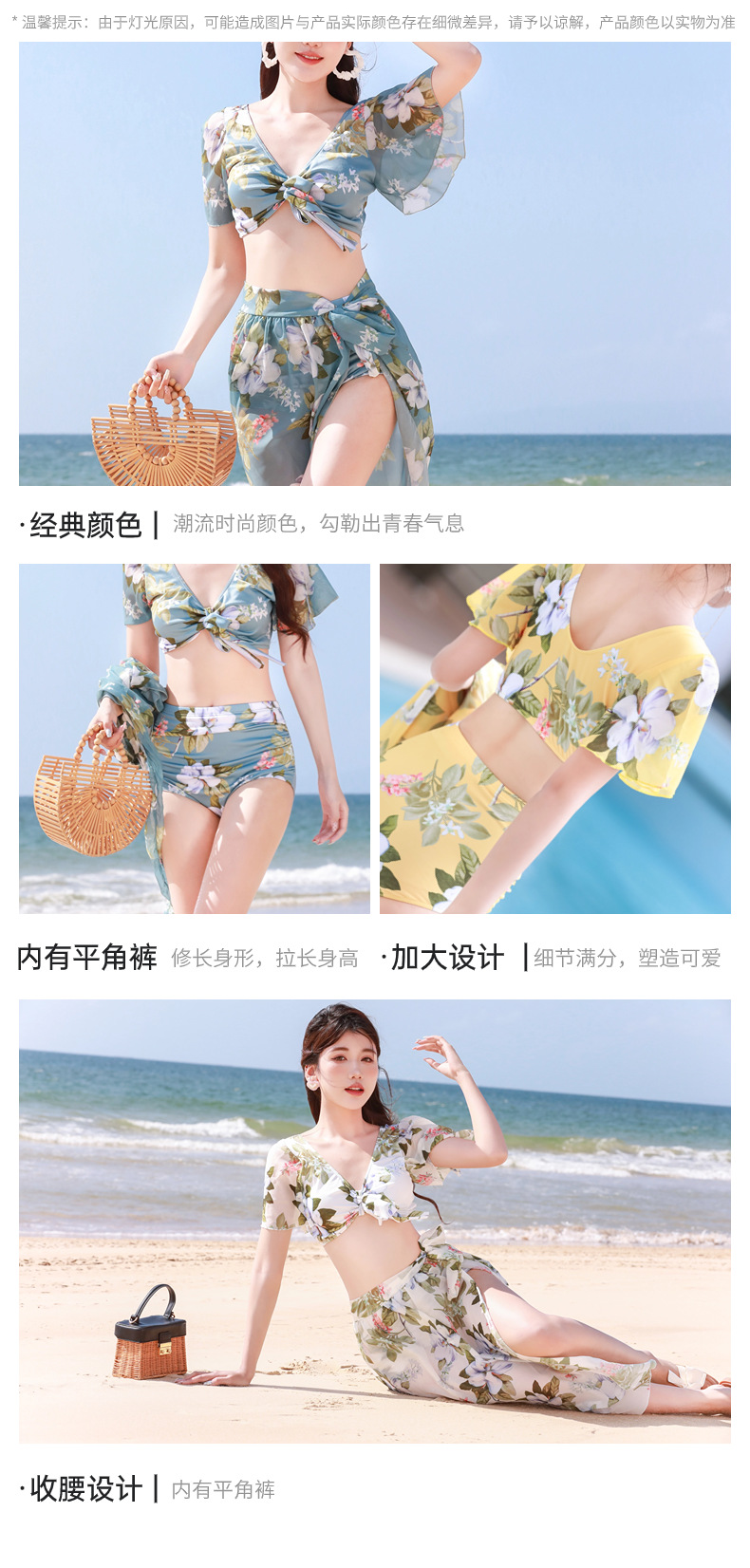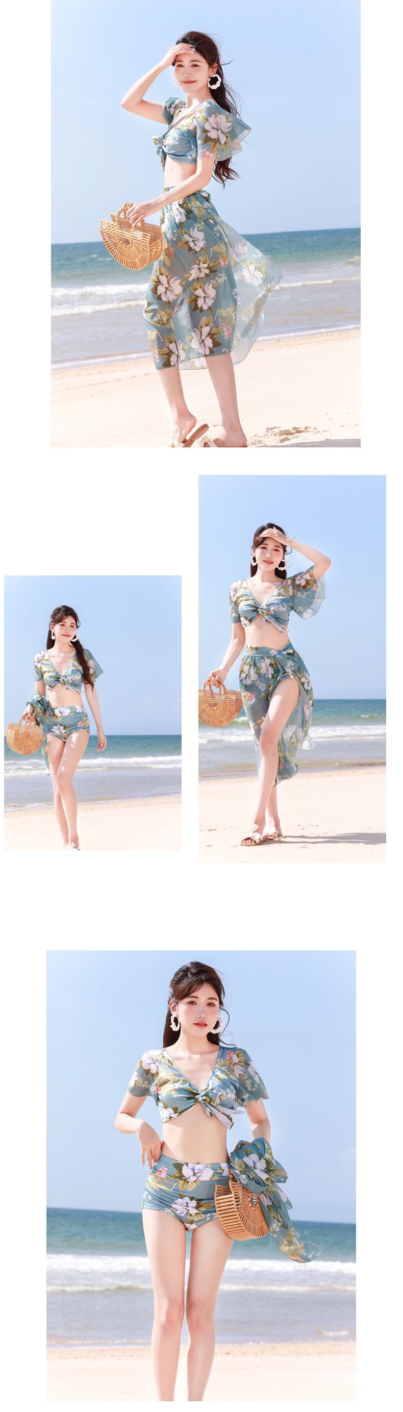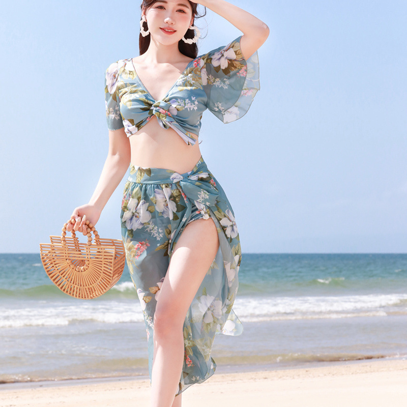 [바이산차] 비키니 스플릿 3 피스 수영복 여성 온라인 붉은 휴가 해변 온천 수영복