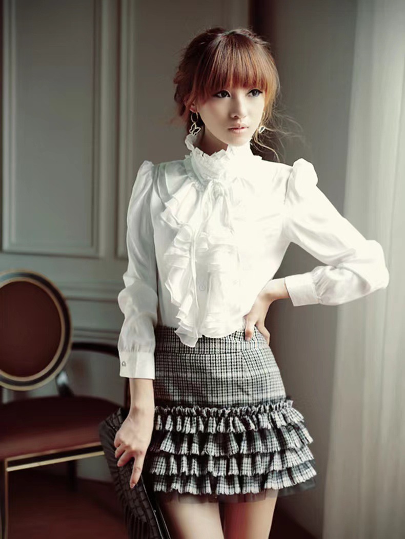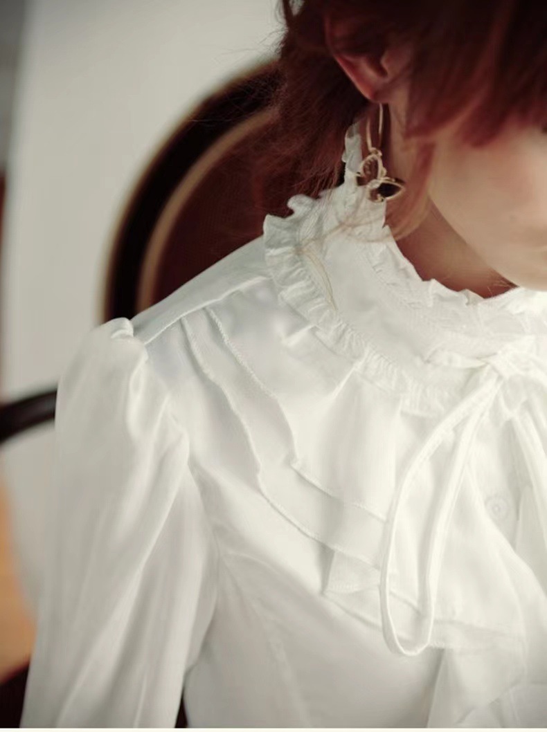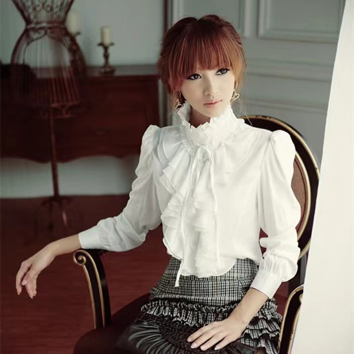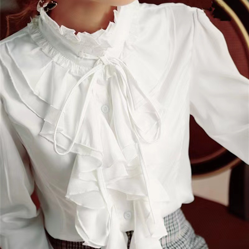2025 봄 가을 한국 스타일 셔츠 여성 긴팔 OL 스타일 슬림핏 화이트 러플 레이스 학생용 이너웨어스토어 가기