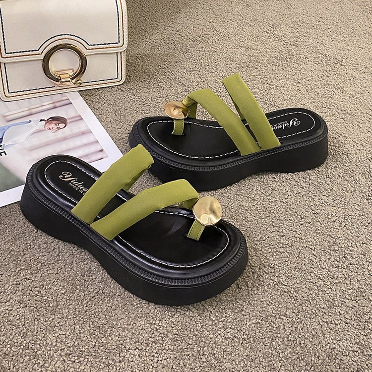 봄과 여름 새로운 패션 야외 캐주얼 플립 플롭 비치 샌들을 2024 여성의 두꺼운 발가락 슬리퍼스토어 가기