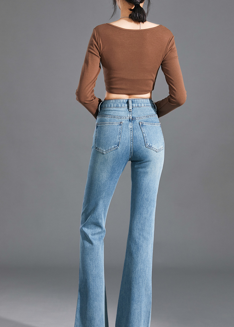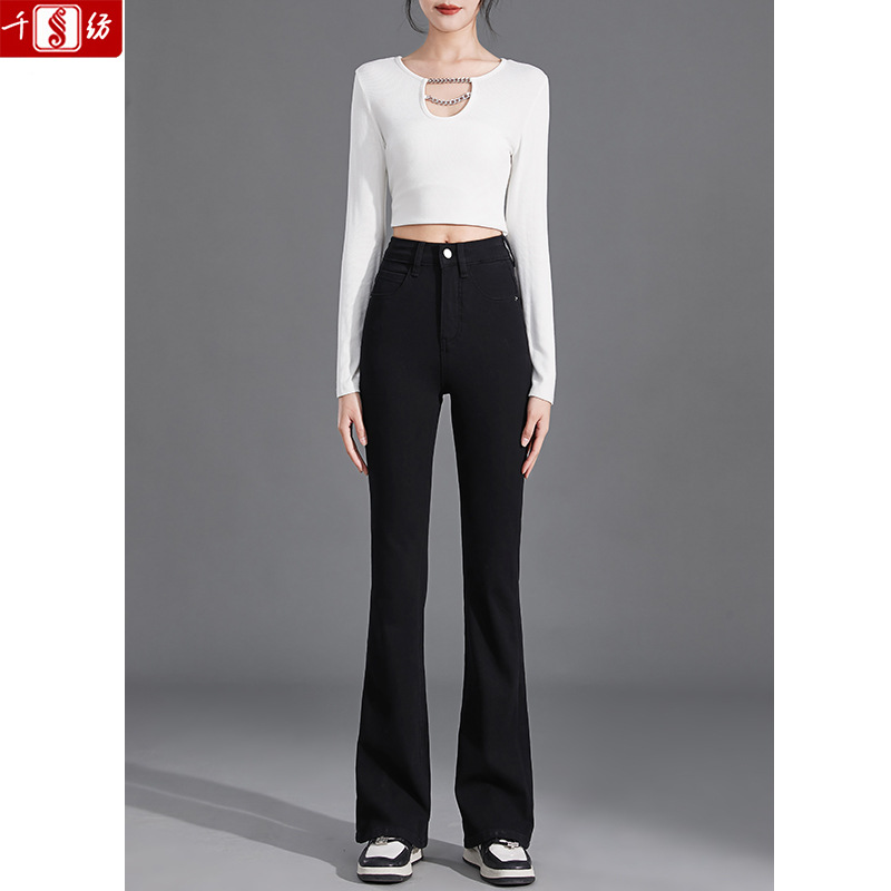 여성용 나팔바지 2025 여름 얇은 슬림핏 다용도 타이트 4방향 신축성 하이웨이스트 데님 마이크로 플레어 팬츠