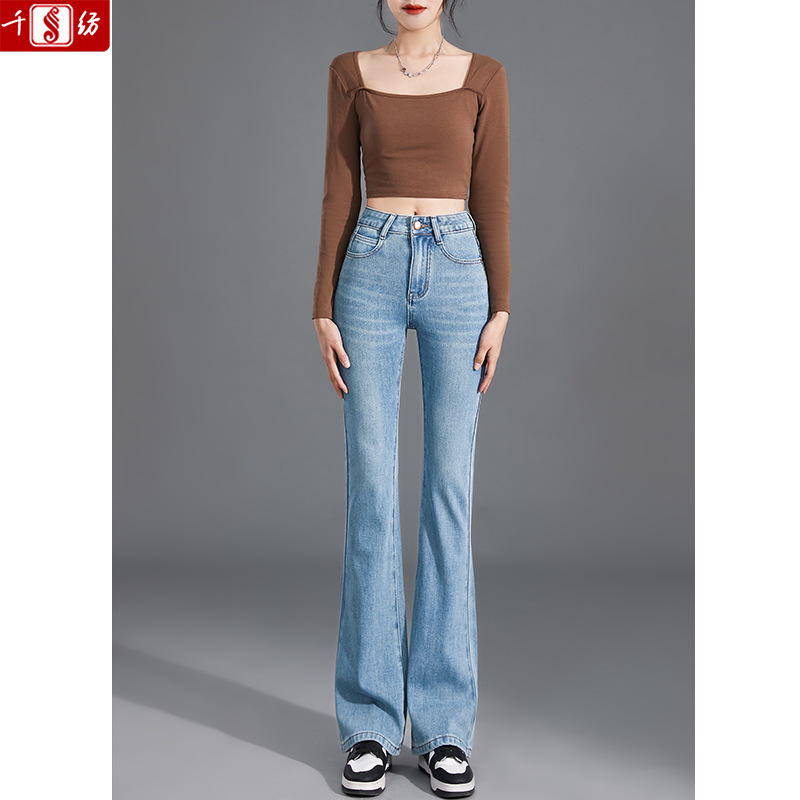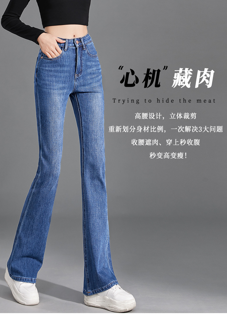 여성용 나팔바지 2025 여름 얇은 슬림핏 다용도 타이트 4방향 신축성 하이웨이스트 데님 마이크로 플레어 팬츠스토어 가기