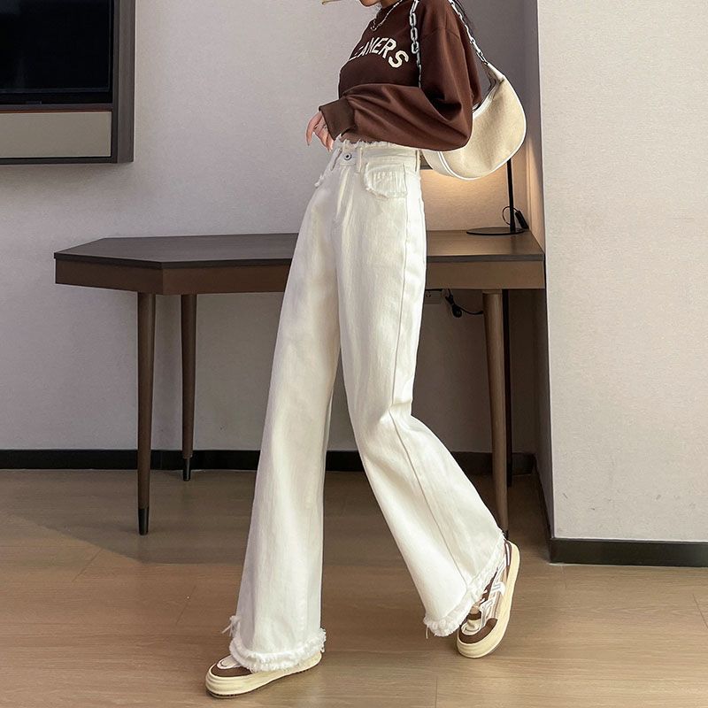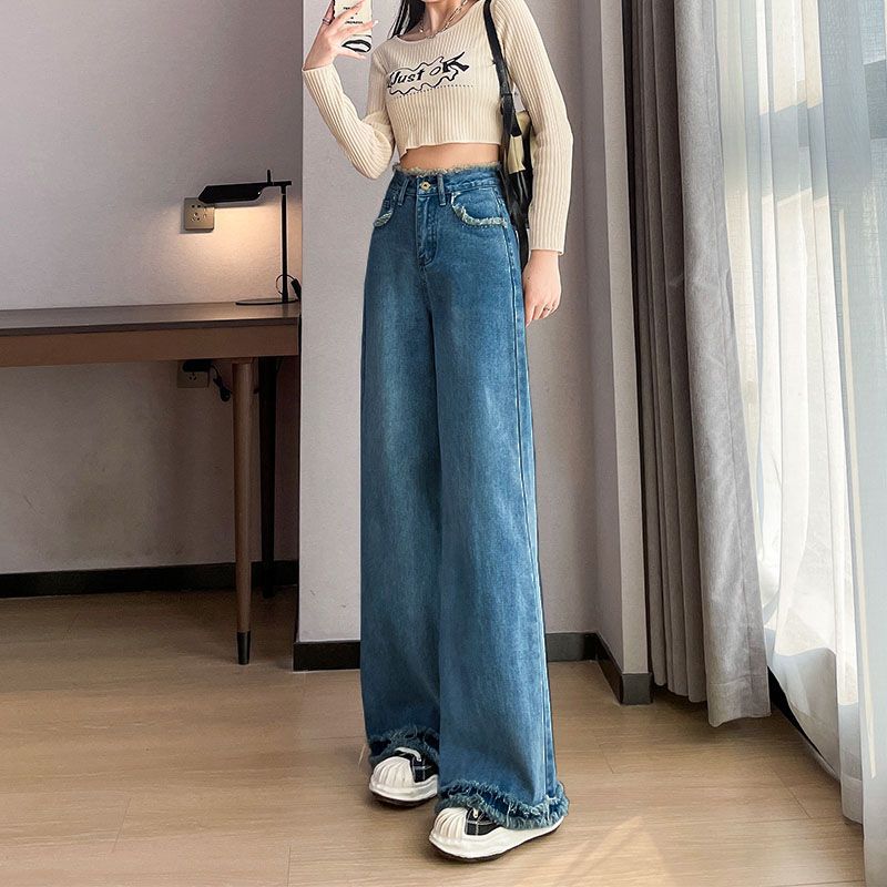 새로운 봄과 여름 높은 허리 드레이핑 느슨한 넓은 다리 걸레 팬츠를 2024 여성을위한 밝은 색상의 스트레이트 청바지스토어 가기