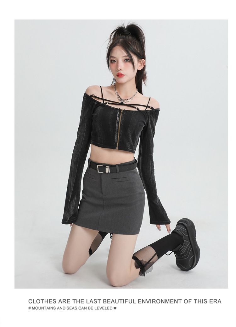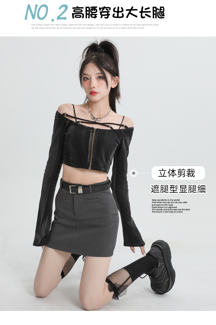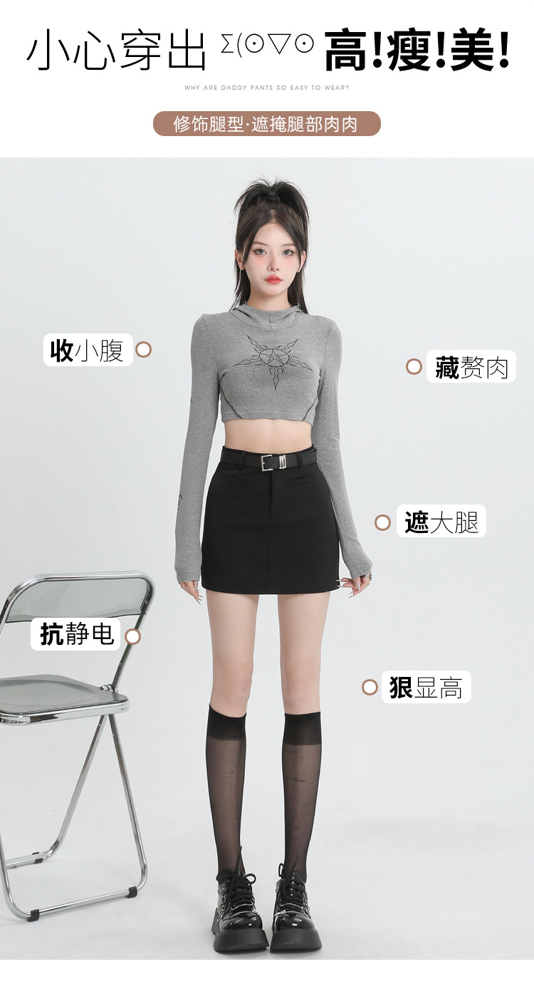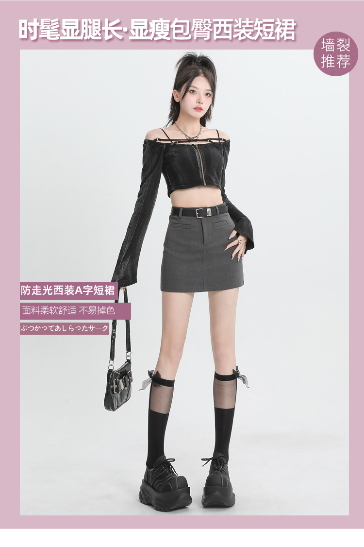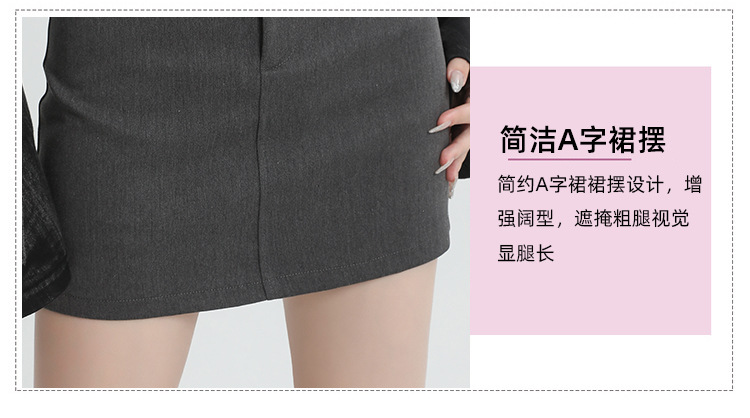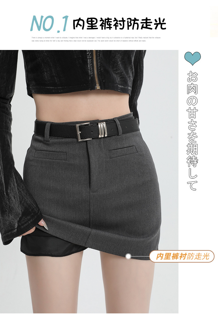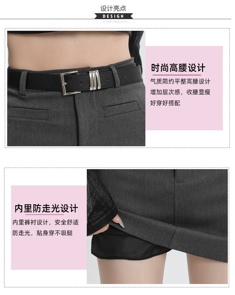 2024 봄과 여름 새로운 회색 세트 스커트 여성의 높은 허리 A 라인 슬리밍 안티 노출 안전 바지 짧은 치마 올 매칭스토어 가기