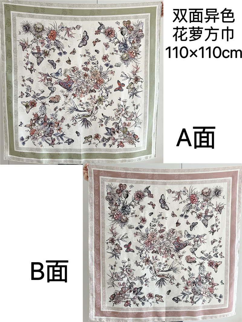 무거운 꽃 장미 실크 양면 2 색 큰 사각형 스카프 중국 스타일 뽕나무 실크 스카프 나비 꽃 목도리 스카프
