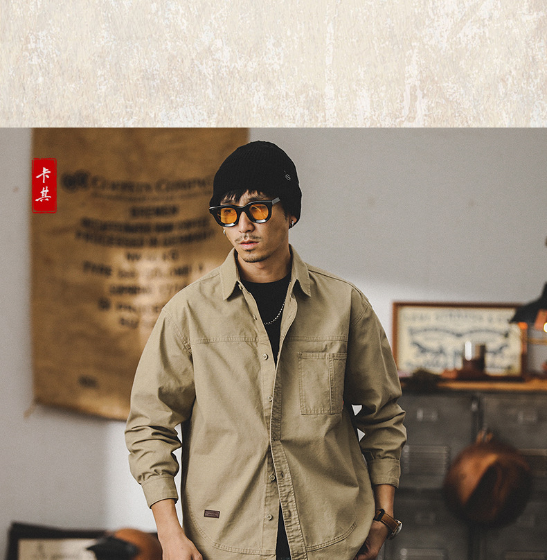 미국 빈티지 스타일 긴팔 셔츠 남성용 미국 워크웨어 트렌디 브랜드 사냥복 상의 남성용 루즈핏 셔츠 남성용 봄 자켓스토어 가기