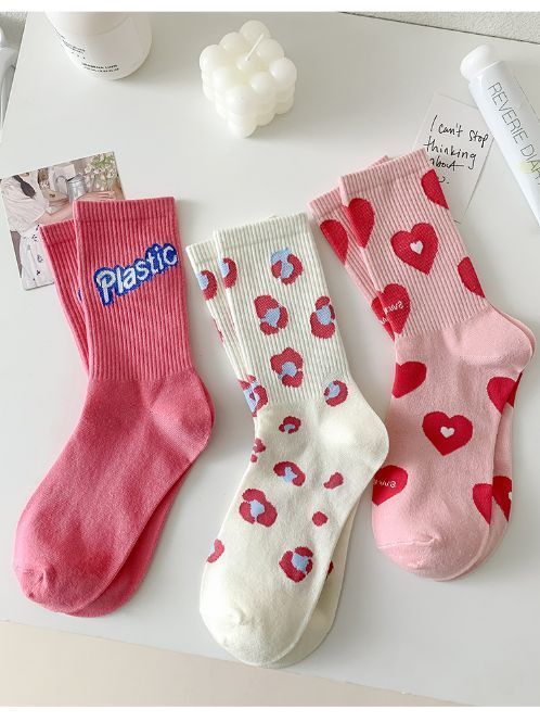 여성용 중간 송아지 양말 한국식 in 트렌디 한 봄과 가을 핑크 딸기 사랑 일본 스타킹 여성 라인 맞춤형 여성 양말스토어 가기