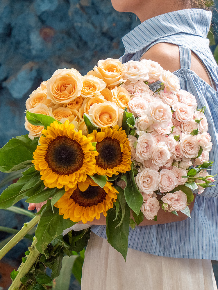 • 임의의 장미 10 개 + 해바라기 3 개 + 카모마일