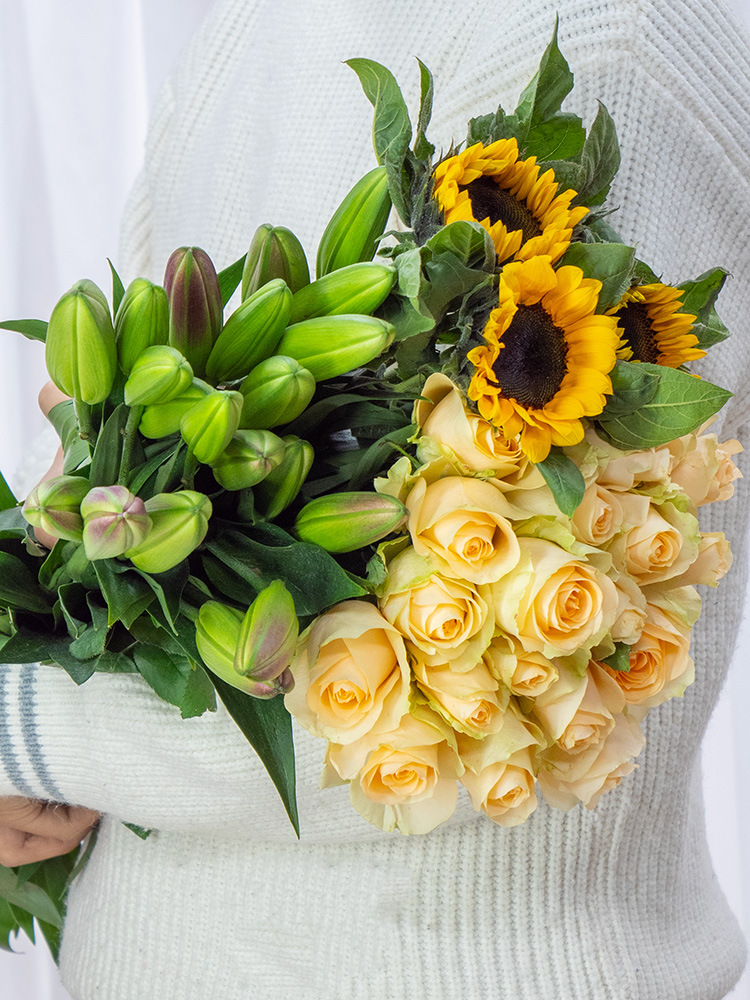 • 임의의 장미 10 개 + 무작위 백합 5 개 + 해바라기 3 개
