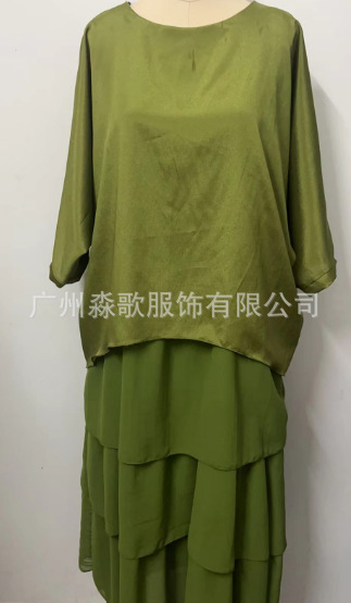 2024 유럽과 미국의 패션 새로운 쉬폰 메쉬 배트 윙 소매 둥근 목 긴 원피스스토어 가기