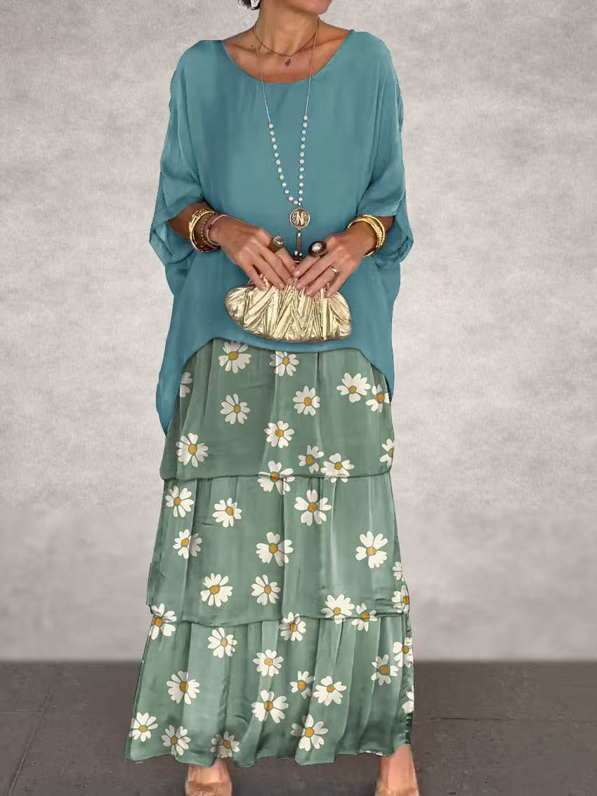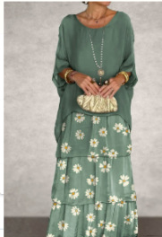 2024 유럽과 미국의 패션 새로운 쉬폰 메쉬 배트 윙 소매 둥근 목 긴 원피스