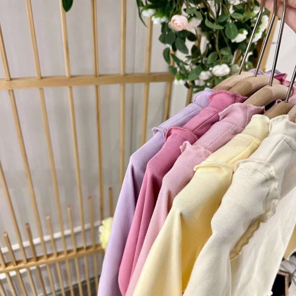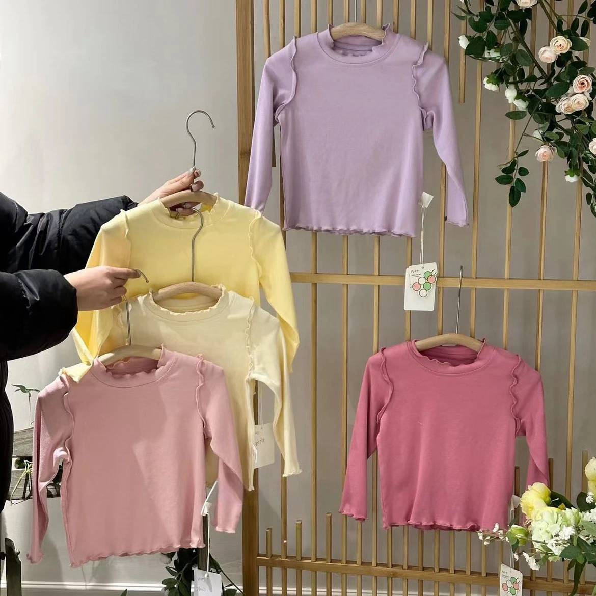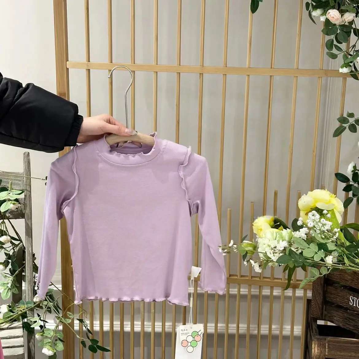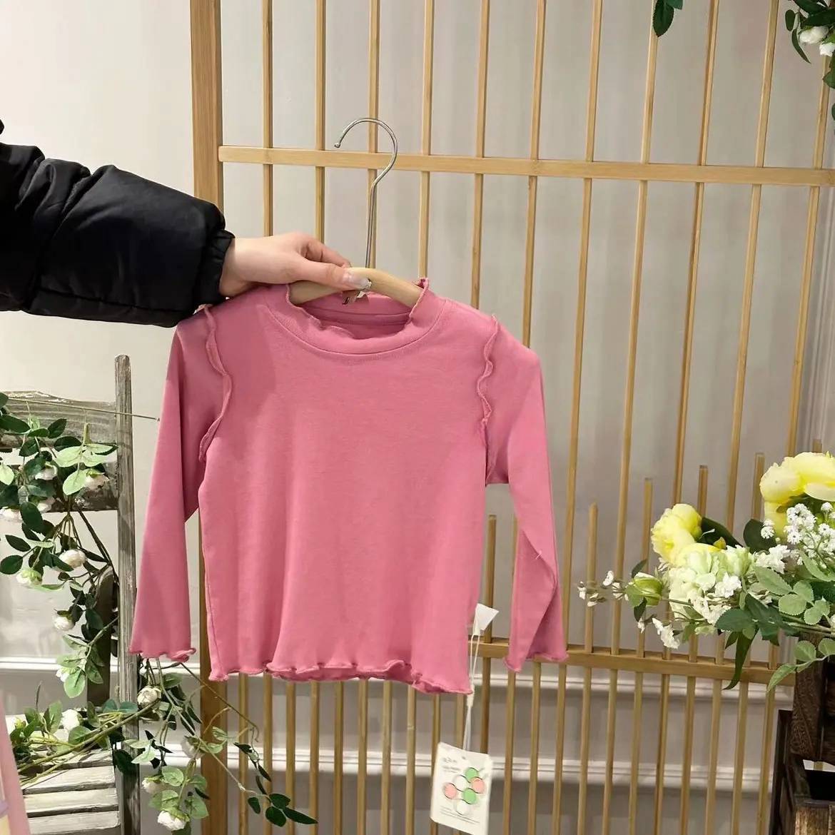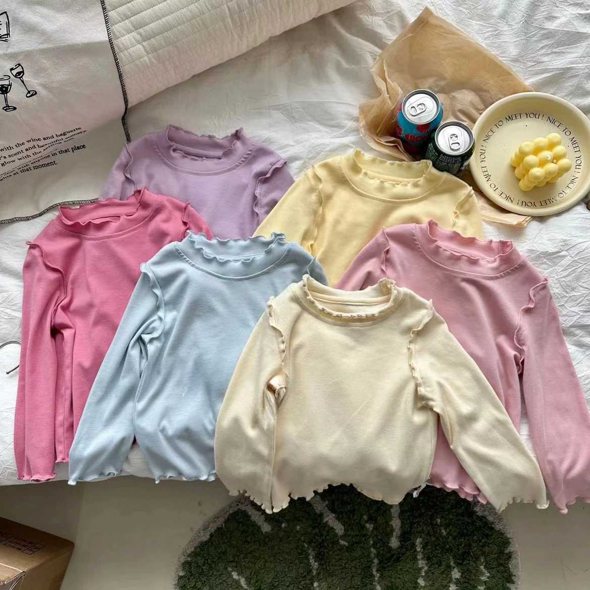 소녀 바지 셔츠 2024 봄 스타일 서양식 레이스 단색 긴 소매 티셔츠 새로운 아기 소녀 탑스토어 가기
