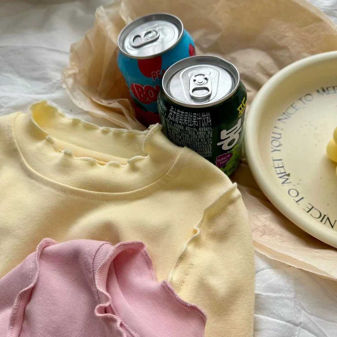 소녀 바지 셔츠 2024 봄 스타일 서양식 레이스 단색 긴 소매 티셔츠 새로운 아기 소녀 탑