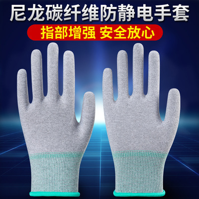 흰색 먼지가없는 탄소 섬유 나일론 Pu 코팅 장갑 정전기 방지 보호 코팅 노동 내마모성 장갑 도매스토어 가기