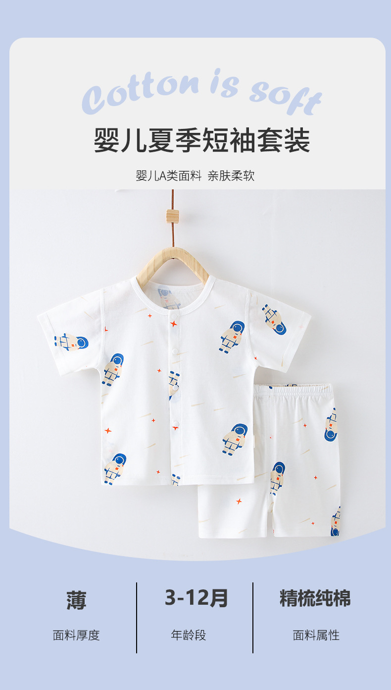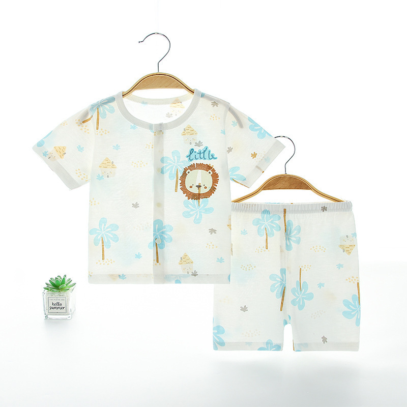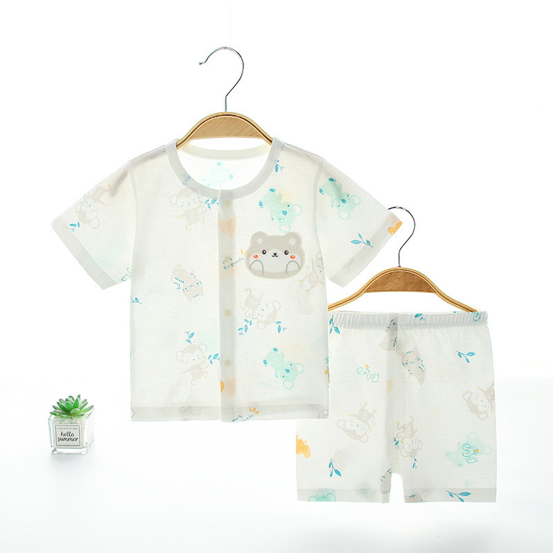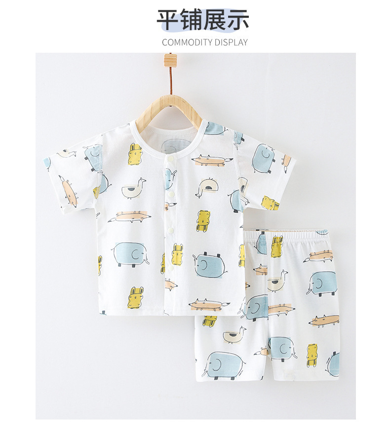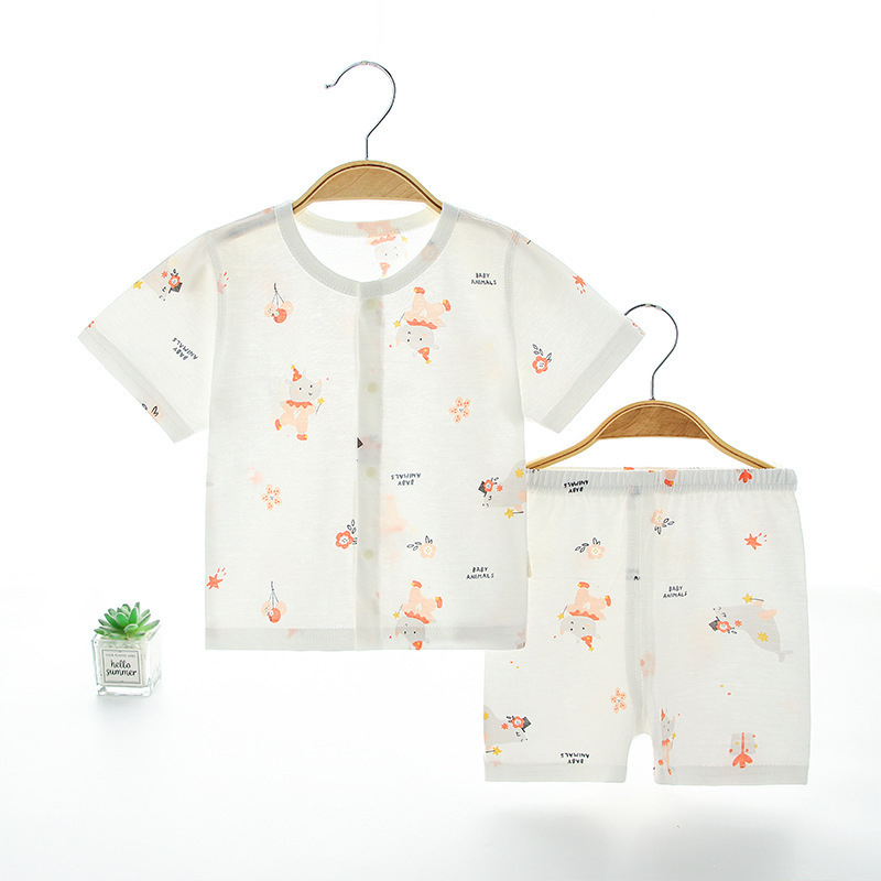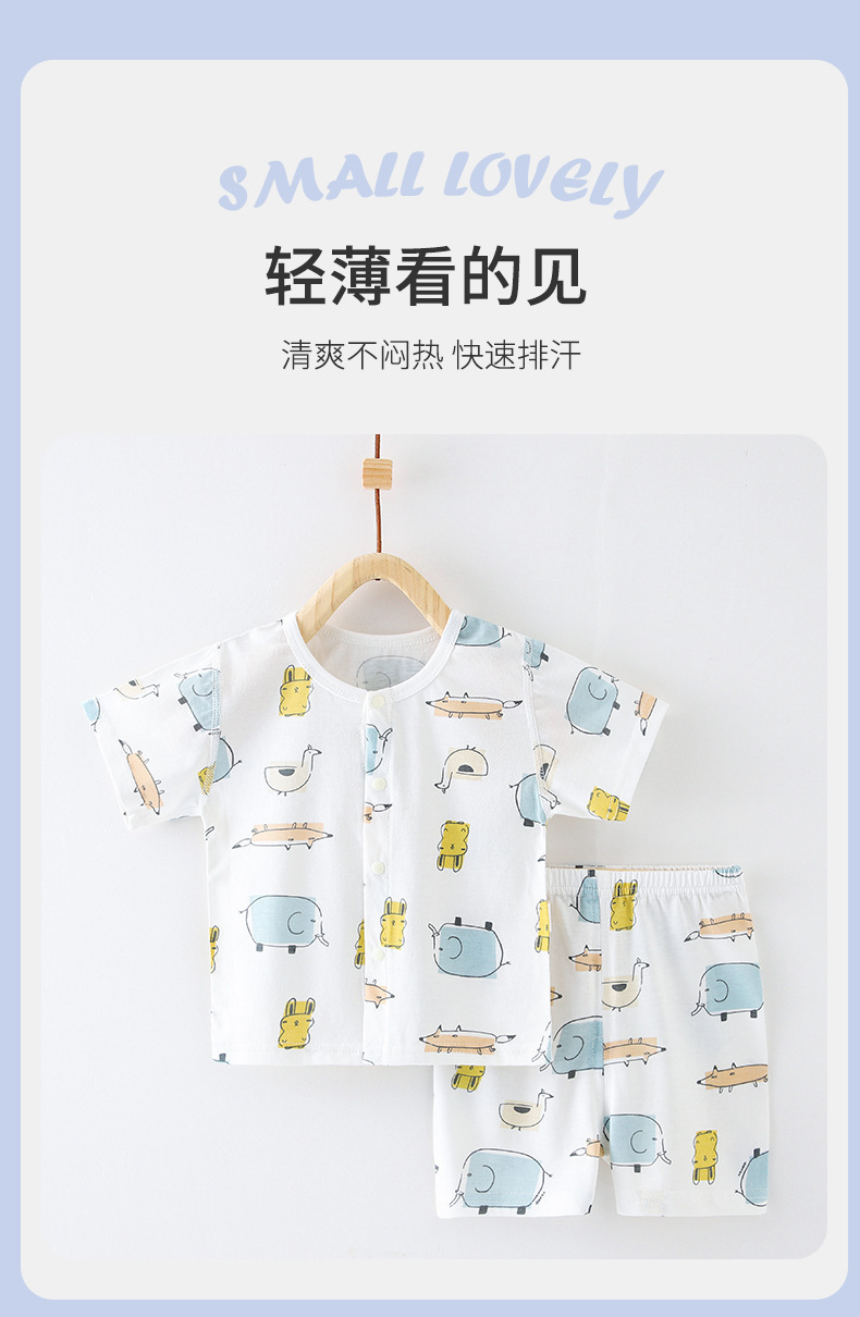 아기 여름 순면 세트 소년 소녀 투피스 얇은 반팔 반바지 캐주얼 홈 착용 아기 오픈 바지스토어 가기