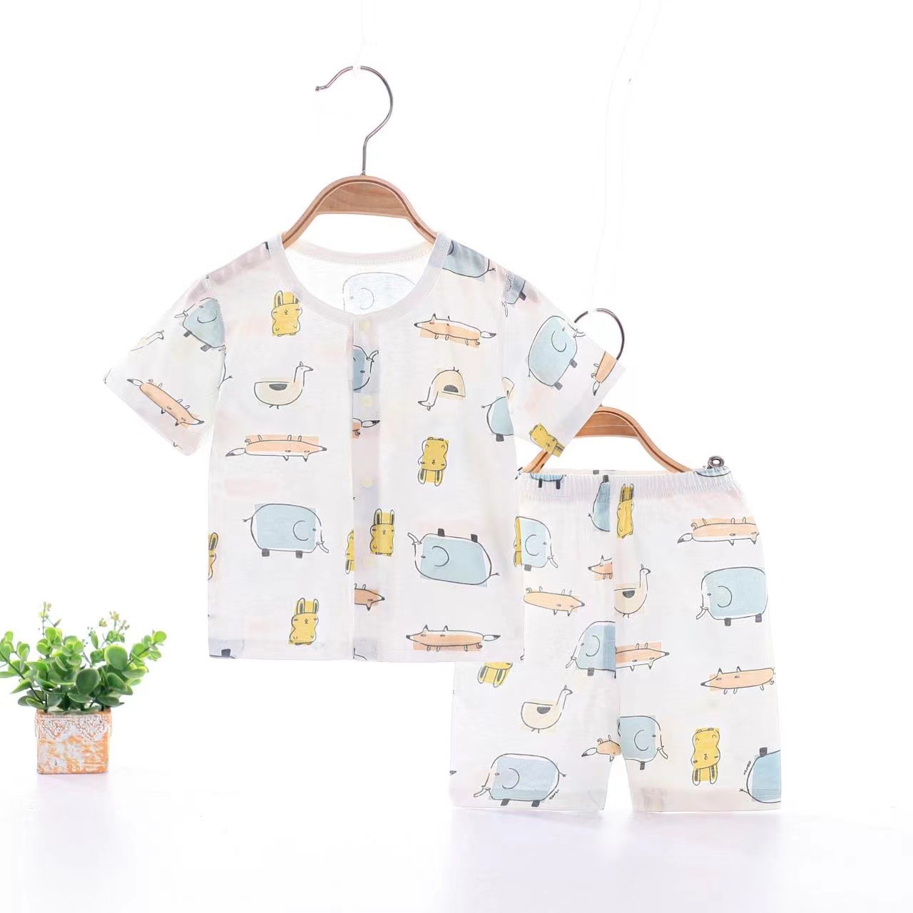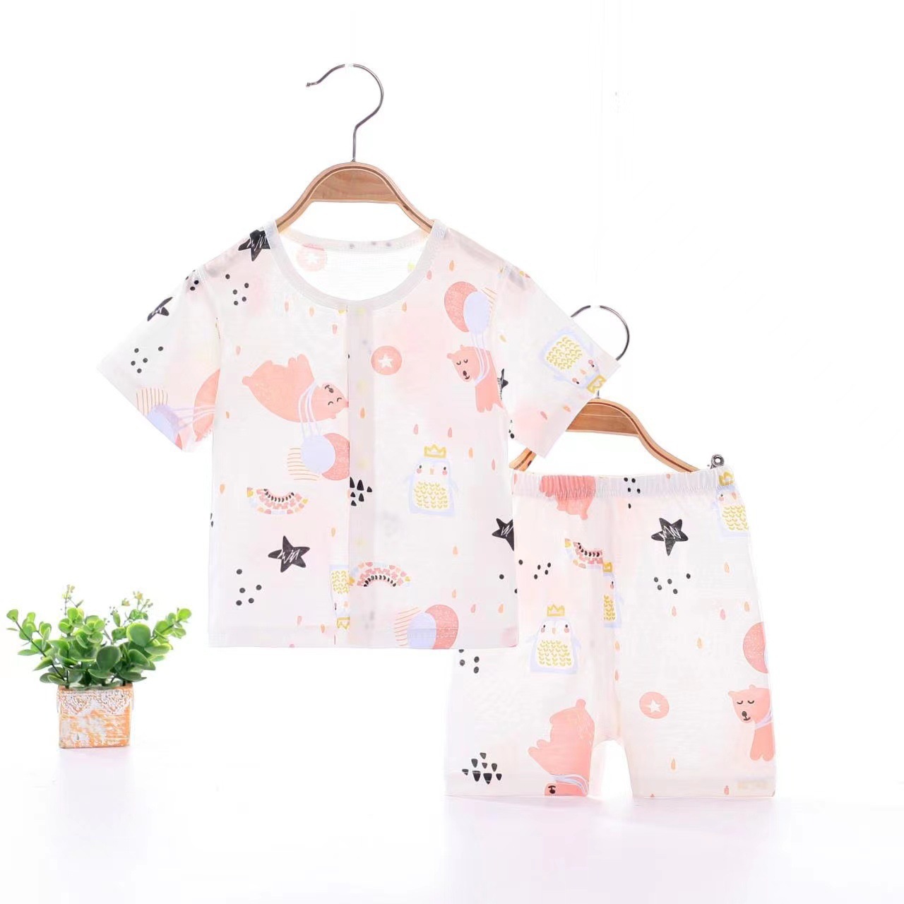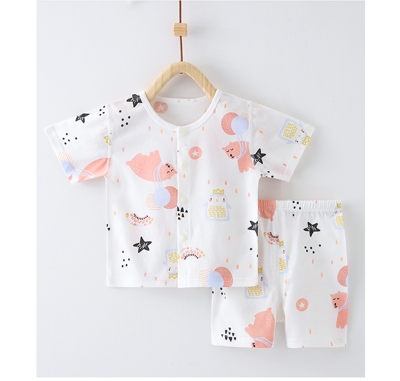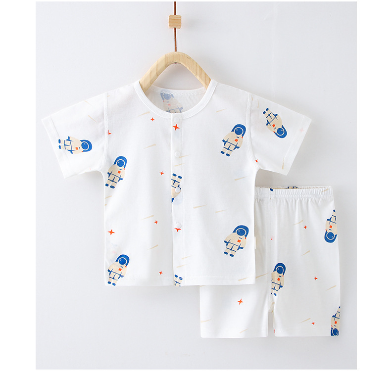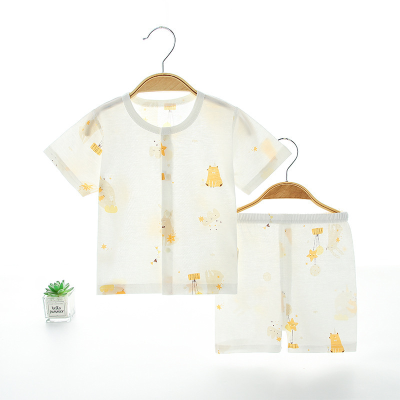 아기 여름 순면 세트 소년 소녀 투피스 얇은 반팔 반바지 캐주얼 홈 착용 아기 오픈 바지스토어 가기
